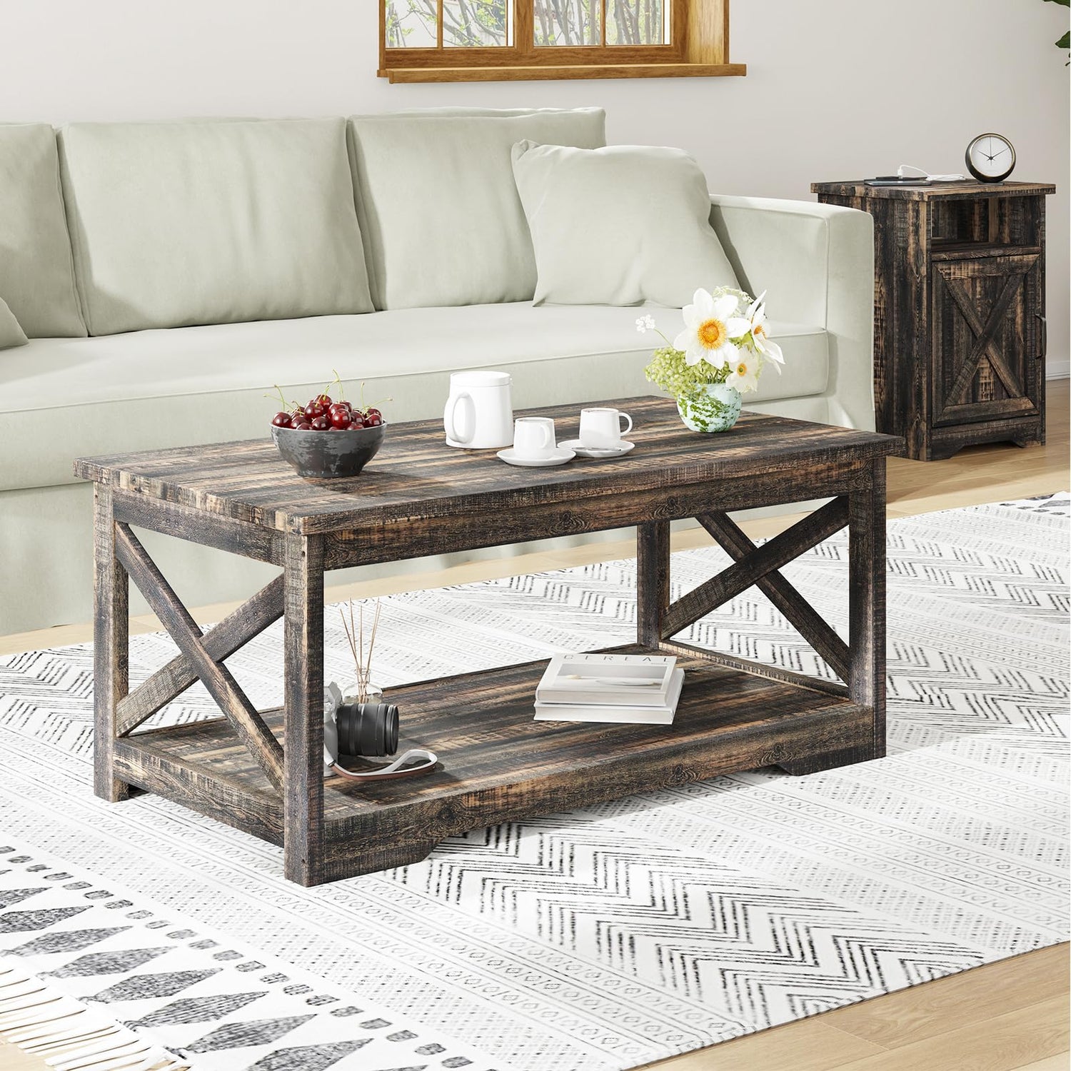 - Barn Door Design: X-shaped design barndoor-inspired 1 coffee table and 2 end tables are the perfect addition to living room, instantly giving a perfect design mix of rustic farmhouse.