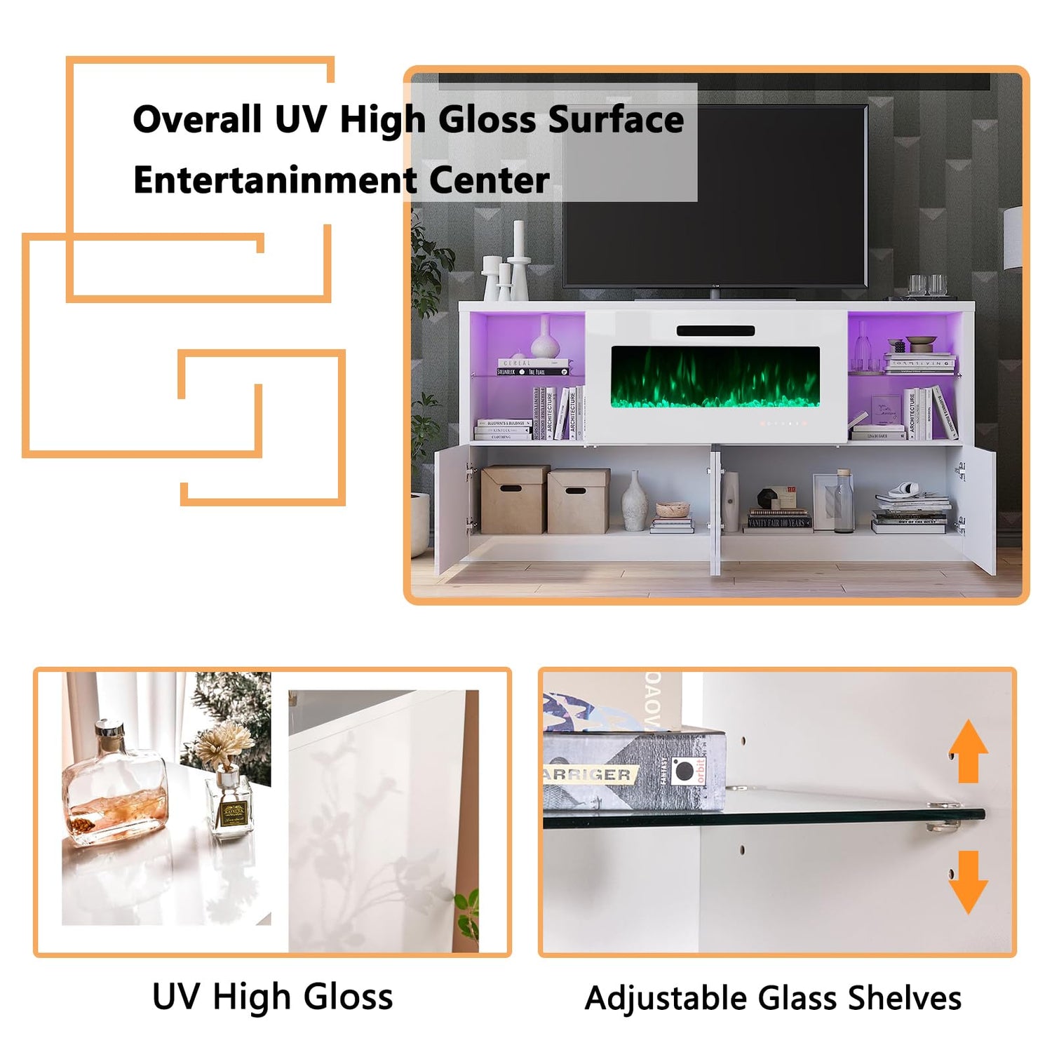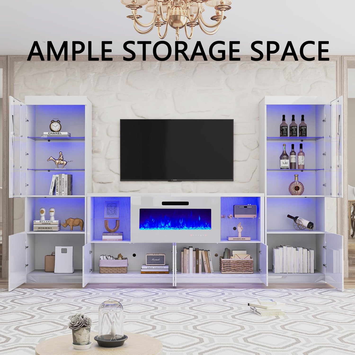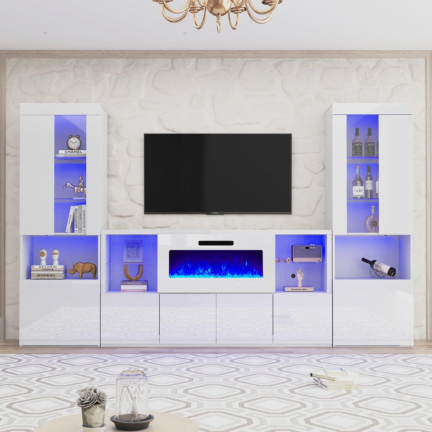 AMERLIFE Modern 3-Piece High Gloss Fireplace TV Stand & Bookcase Set in White