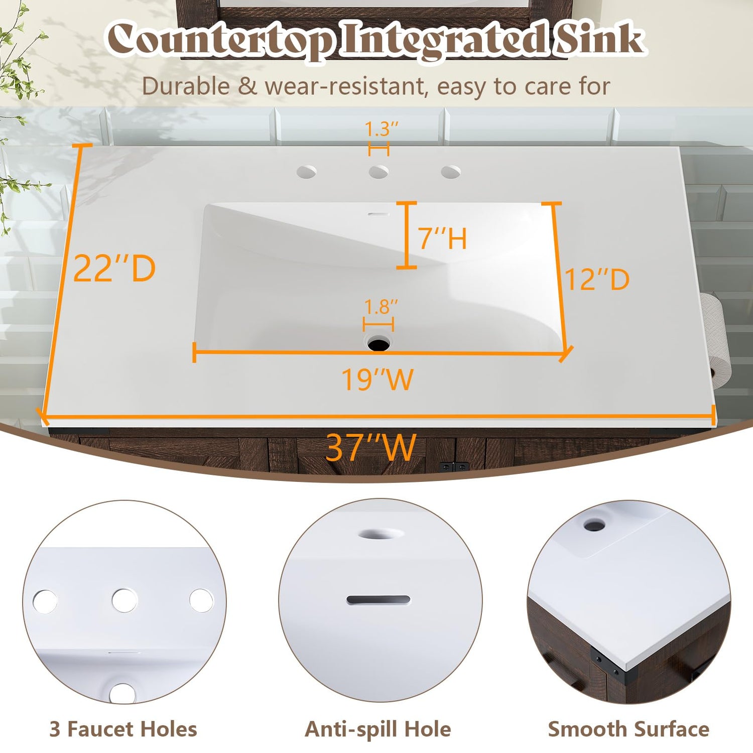 - Larger Countertop Integrated Sink: 37" Wx22" D acrylic smooth surface countertop features 3 predrilled faucet holes, durable & easy to clean, integrated sink effectively prevents water leakage