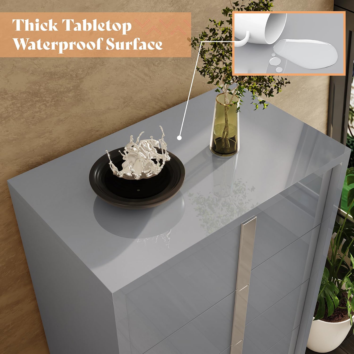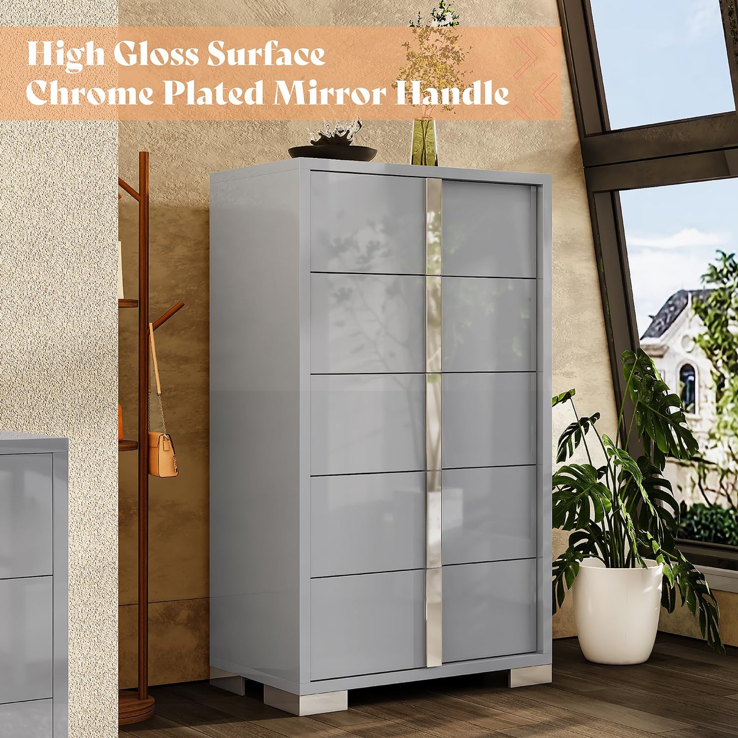 AMERLIFE 50.2" H Modern 5 Drawer Dresser, Glossy Surface Chest of Drawers, Large Storage Organizer for Bedroom, Living Room, Cloakroom, Luxury, Light Grey
