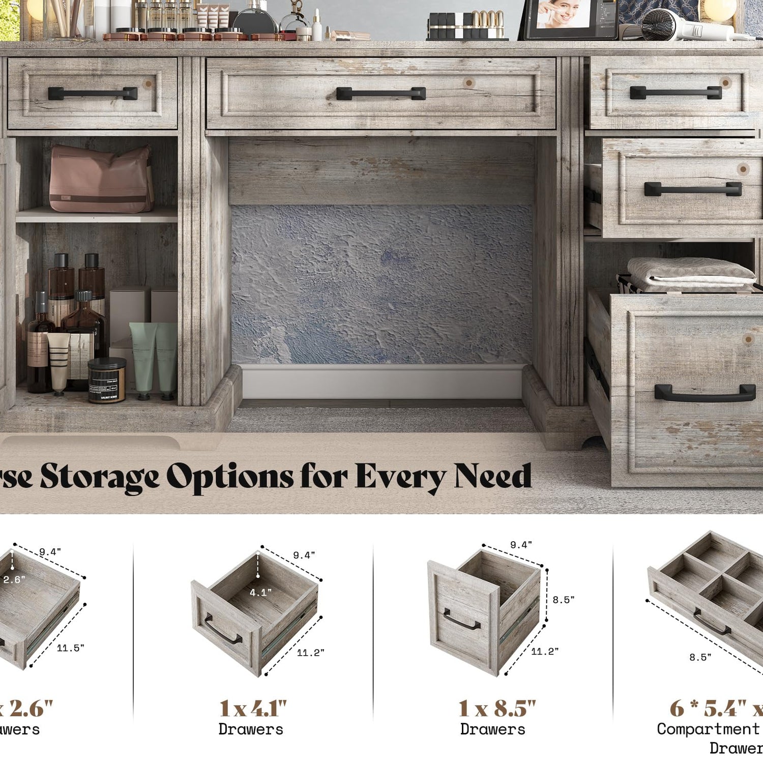 • [Built-in Charging Station] The vanity dresser includes a built-in charging station with 2 AC outlets and 2 USB ports, allowing you to conveniently use your hair dryer, curling iron, or mobile devices simultaneously, ensures that you stay powered up while enjoying your beauty routine
