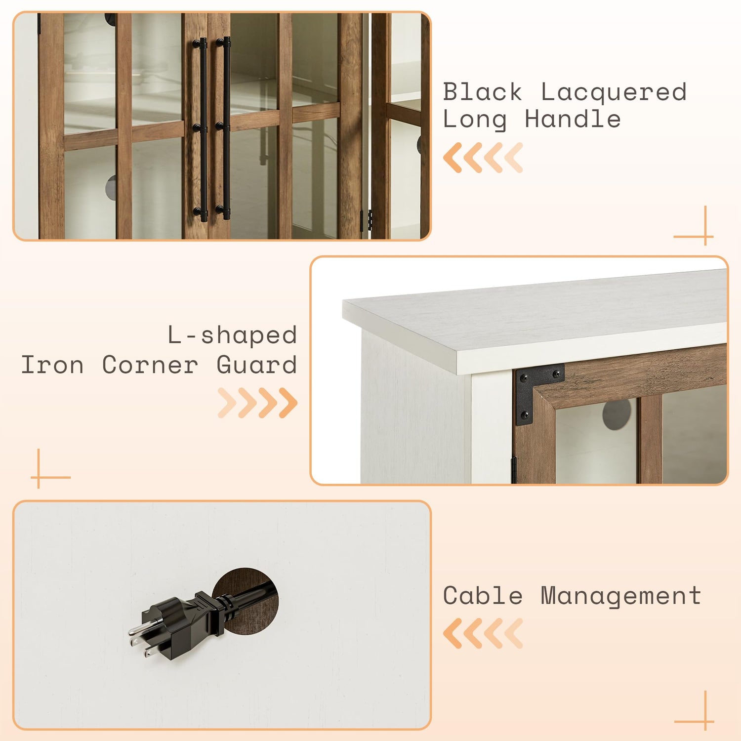 - Vintage Design: The farmhouse cabinet features long pull metal handles and wood cross-shaped glass doors, evoking a vintage feel, and adding character to your interior.