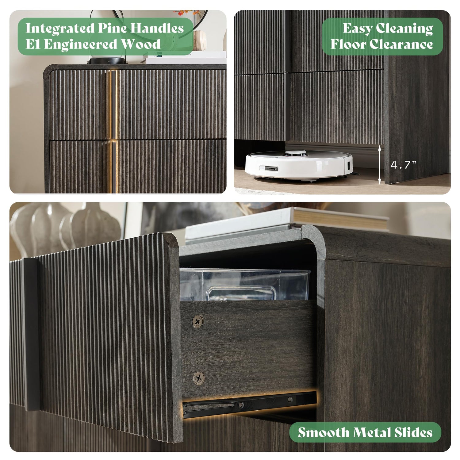 - Fluted Fronts & Rounded Corners: Featuring wide deep fluted fronts and rounded corner edges, this wooden storage cabinet combines sophistication with safety. The smooth curves prevent accidental bumps — ideal for families with kids or pets.
