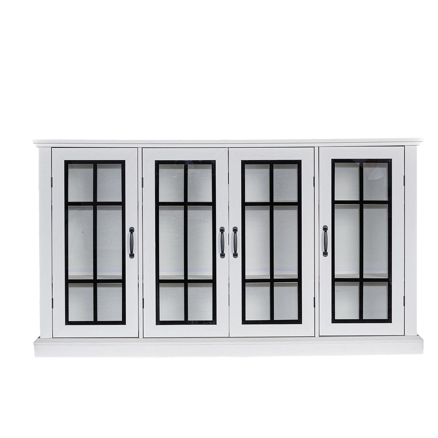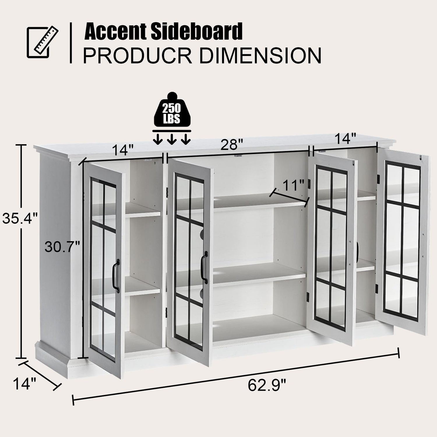 AMERLIFE 63" Sideboard, 6 Adjustable Shelves Sideboard Buffet Cabinet with 4 Doors, Accent Storage Credenzas for Dining Room, Living Room, Distressed White