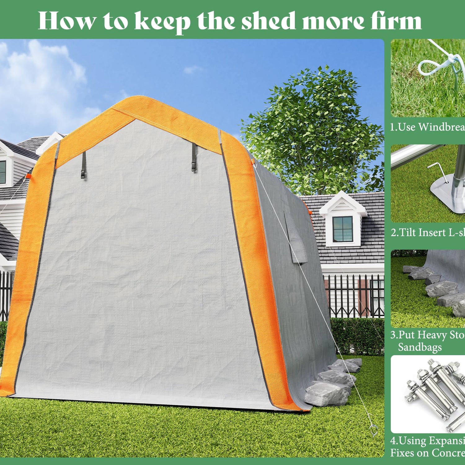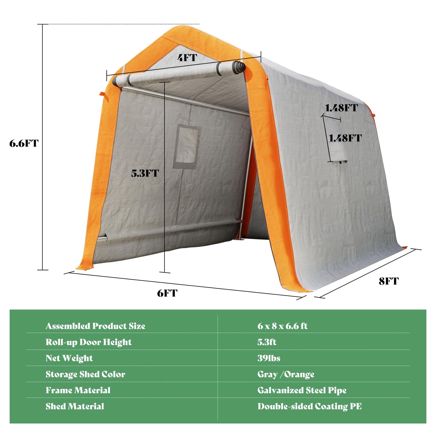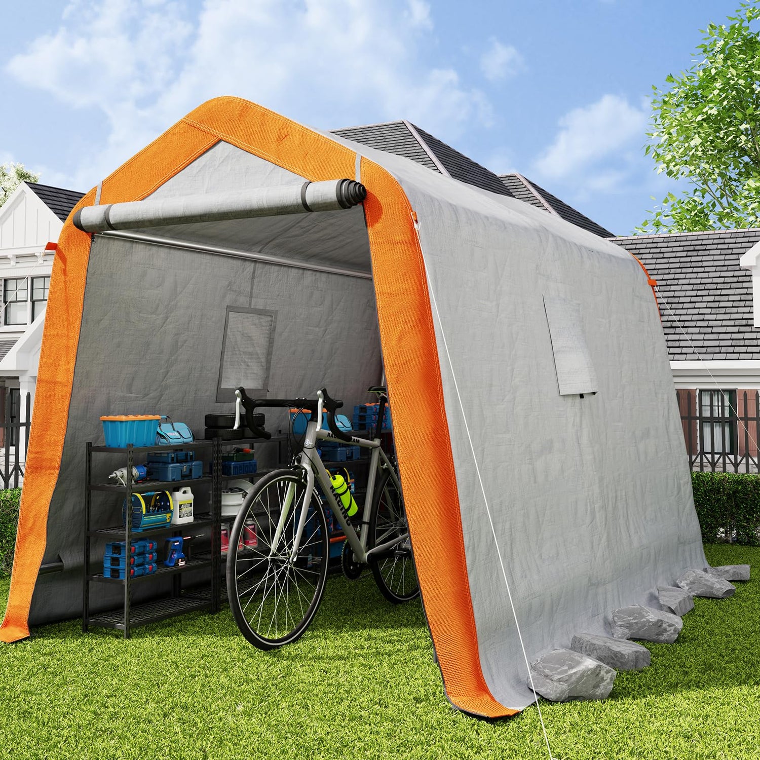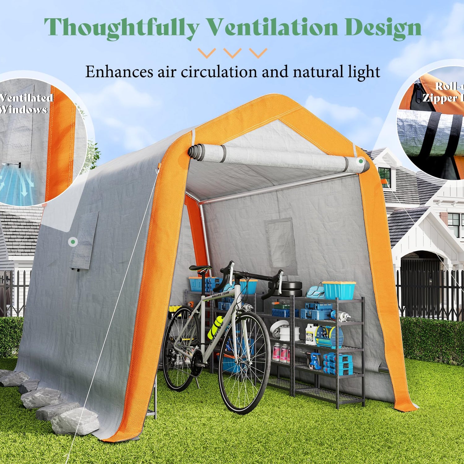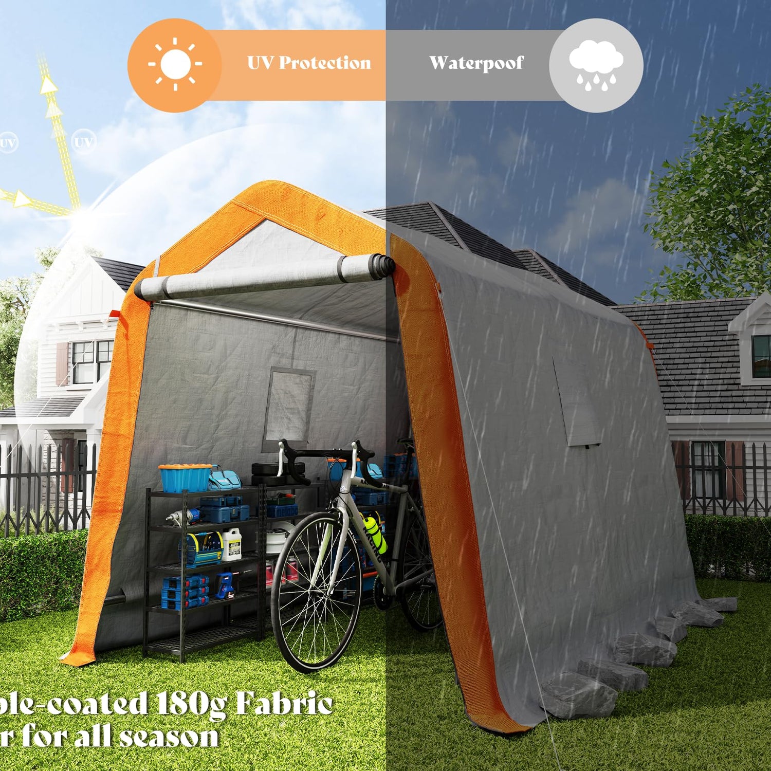 AMERLIFE 6x8x6.6 FT Heavy Duty Portable Shed Storage Shelter, Outdoor Storage Shed with 2 Waterproof Windows & Roll-up Zipper Door, Carport for Motorcycle, Bike, Grey