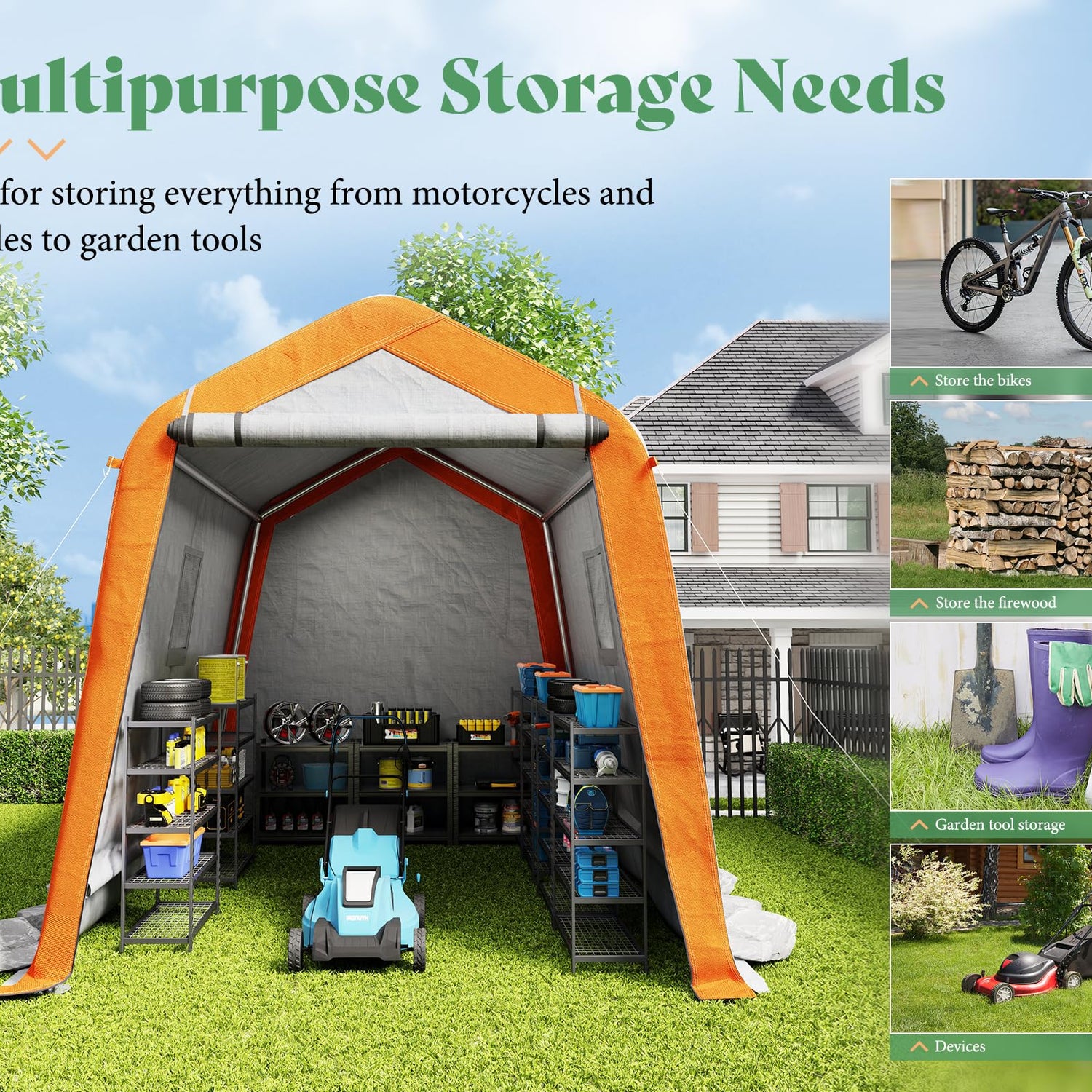 - Reinforced Metal Frame: The portable storage shed features galvanized steel pipe with extra reinforcements at the joints. Ideal for storing everything from motorcycles and bicycles to garden tools