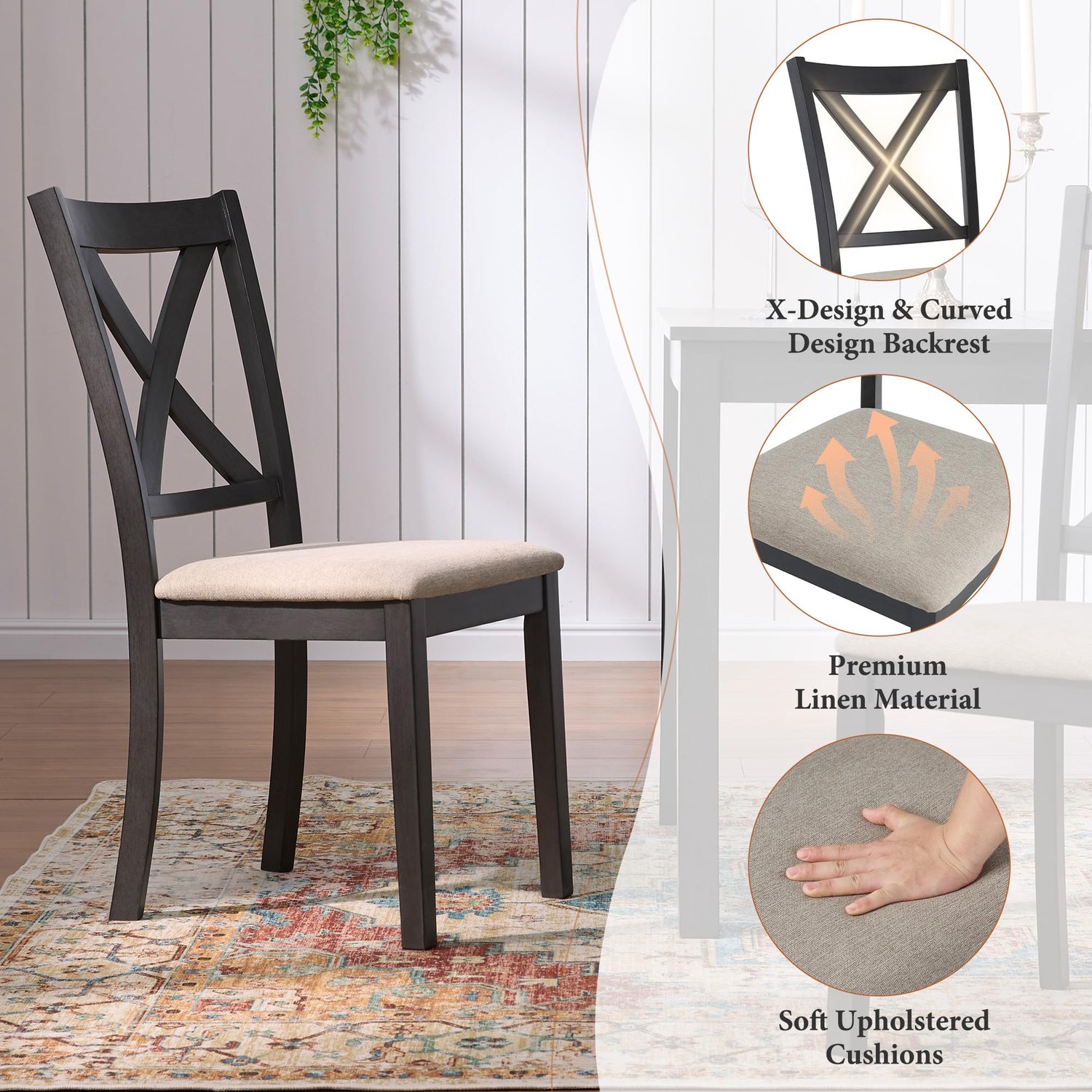 - 【Ergonomic Design】Set includes 6 upholstered high-back chairs, each with a thick, high-density foam seat and breathable linen fabric—providing lasting comfort for extended gatherings, kids’ homework, or working from home
