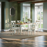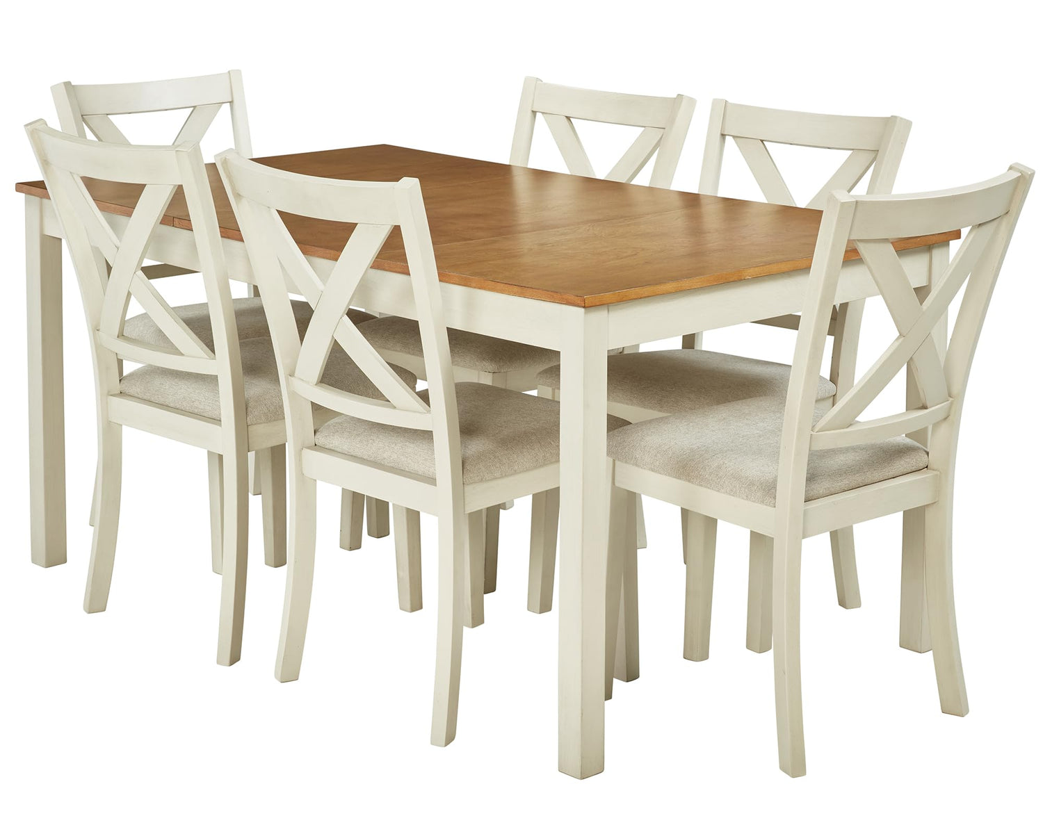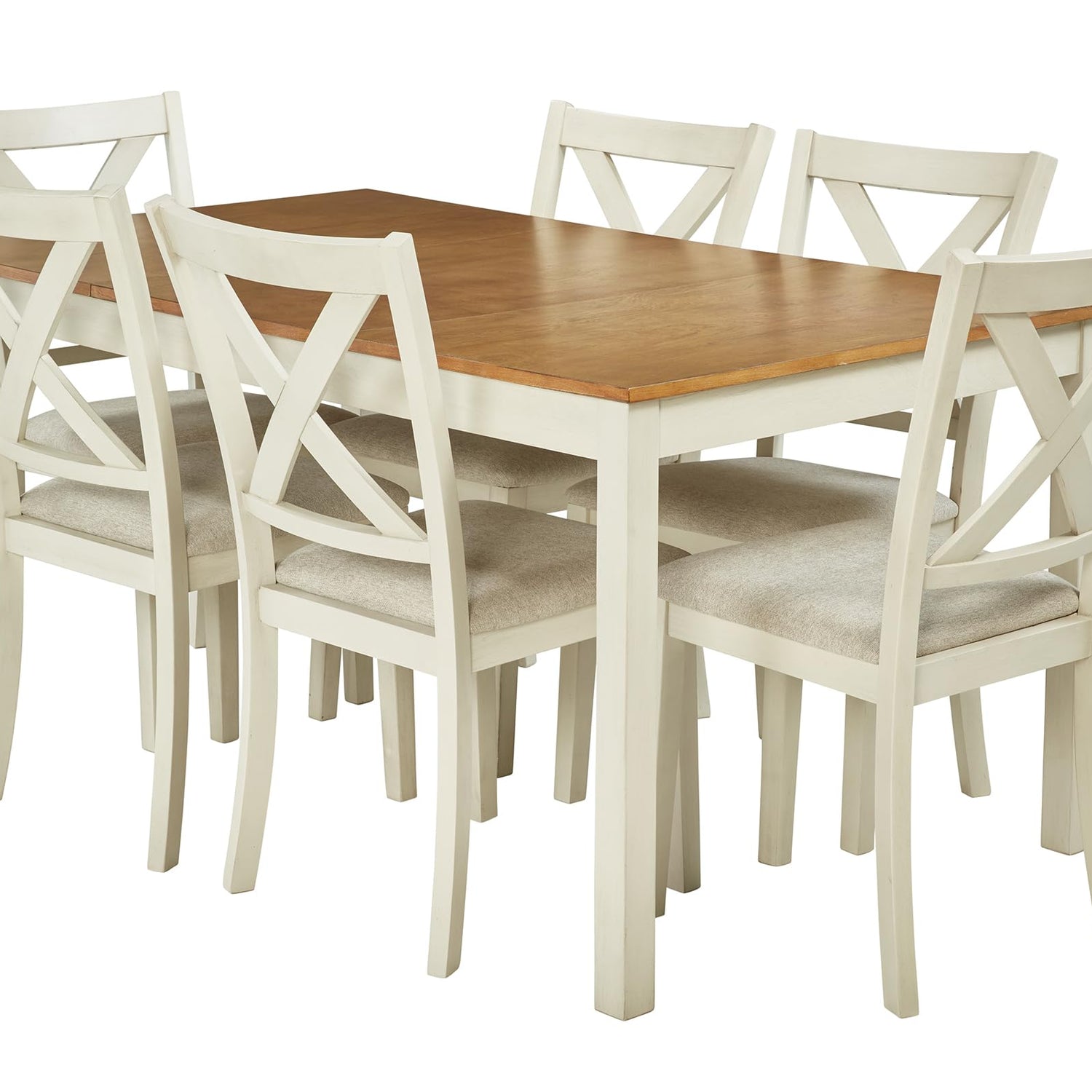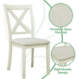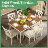 AMERLIFE 7-Piece Farmhouse Solid Wood Dining Table Set with 6 Upholstered Chairs, 60" Space Saving Dinner Table & Chairs Set, for Dining Room, Kitchen, Restaurant, Brown & White