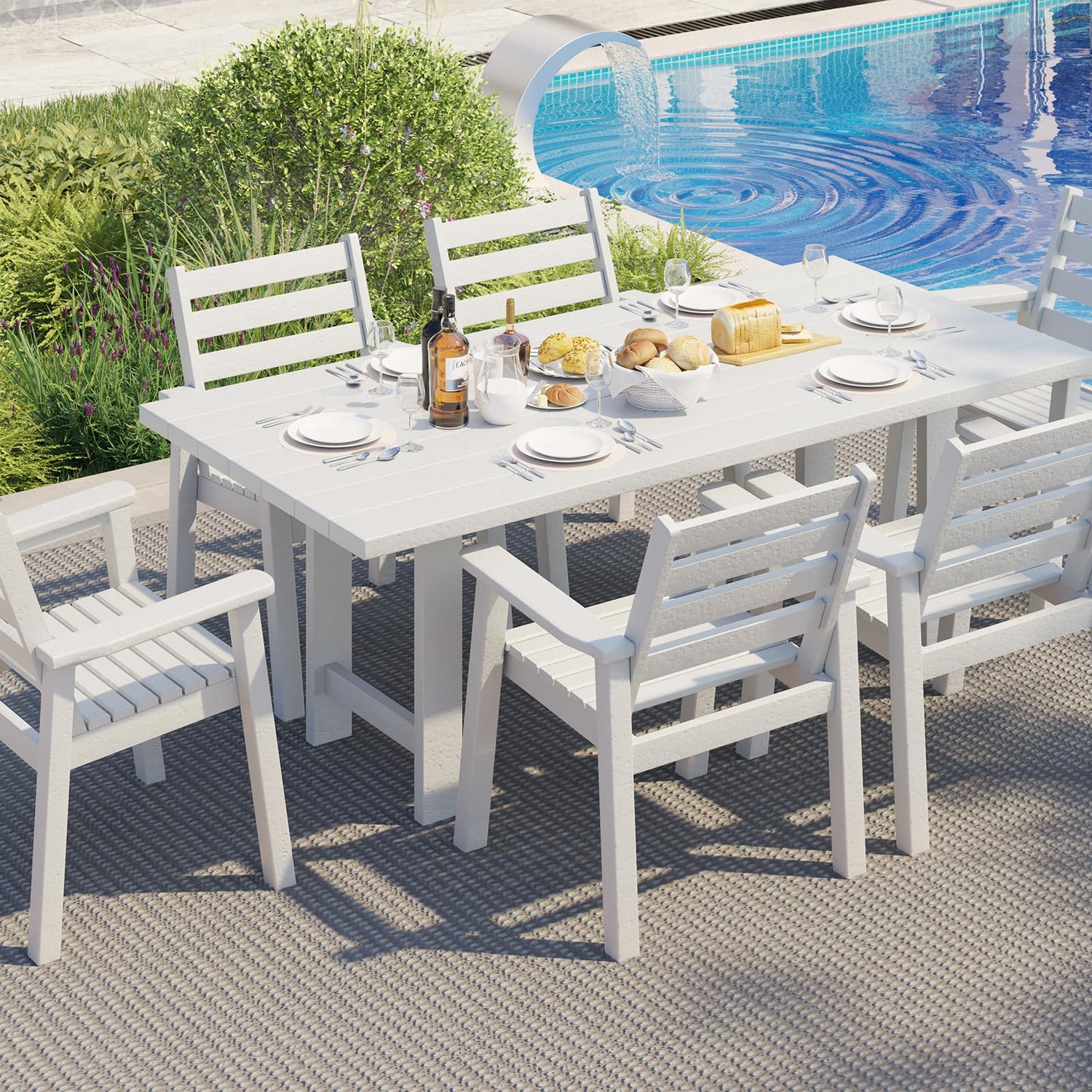 - 【7-Piece Patio Dining Set】Includes 1 modern rectangular table and 6 ergonomic chairs. Spacious 71" L x 32" W table offers ample space for family gathering and outdoor party in your garden or poolside