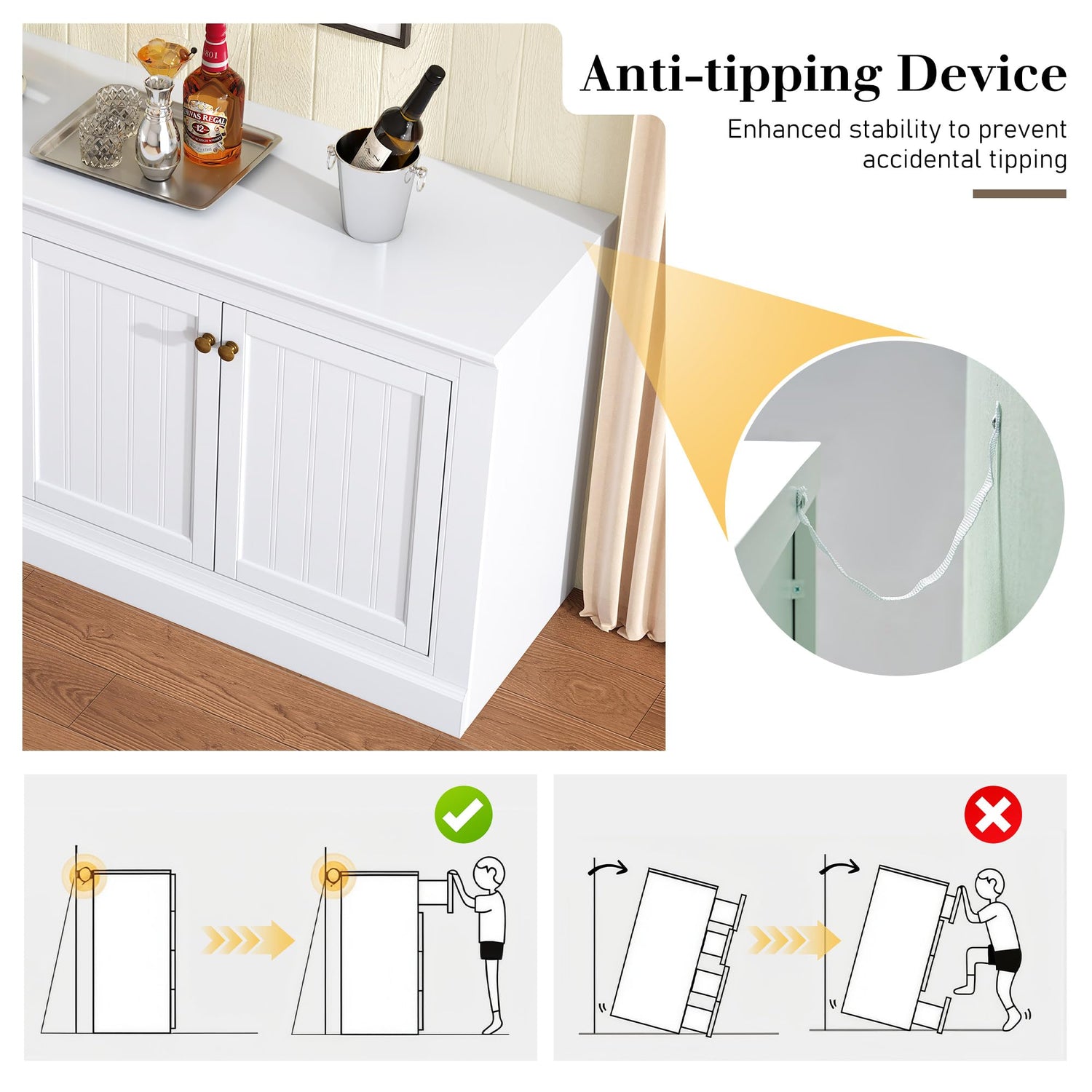 - 【Modern Farmhouse Look】Buffet cabinet painted in a premium smooth white with elegant vertical panels barn doors, the surface resists stains, scratches, waterproof & easy to clean. Create a high-end and simple home atmosphere.