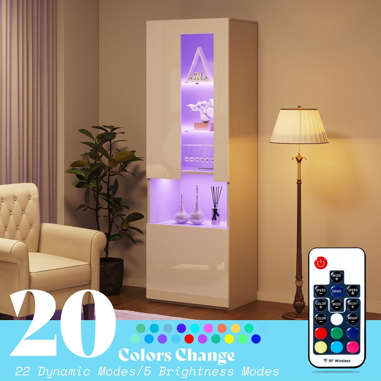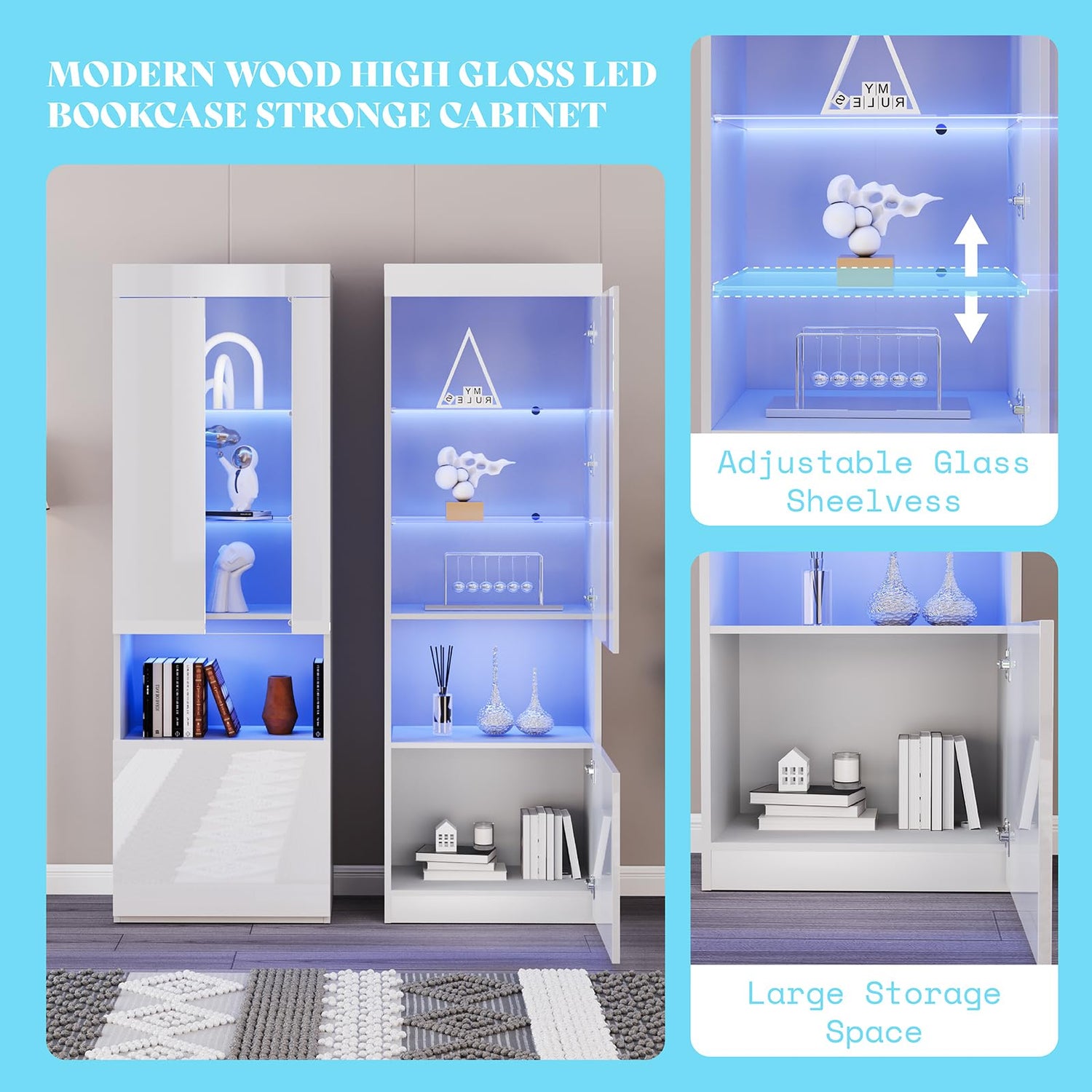 - 【Large Storage Space】High gloss bookshelf display with 5 tiers for storage and adjustable LED lights, The adjustable glass shelves are designed to be practical and aesthetically pleasing.