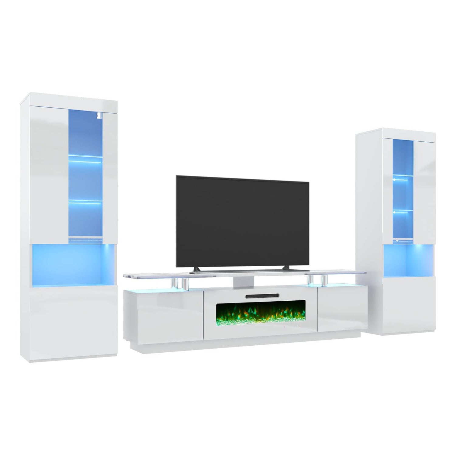 - Modern high gloss tv stand set using integrated suit design shows the furniture collocation aesthetics creating stylish and elegant living room theater also perfect media furniture for playroom solving your matching worries