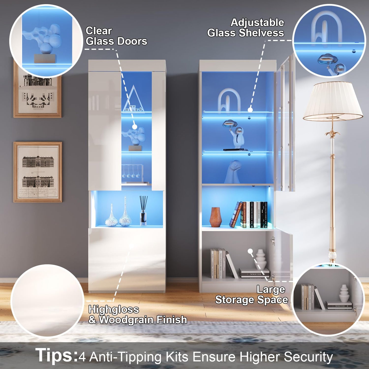- 2 x 5-tier bookcases provide ample storage, 2-layer clear glass bookshelves with 20 colors LED and transparent doors to display elegance. Perfect for those in need of living room storage space & decor