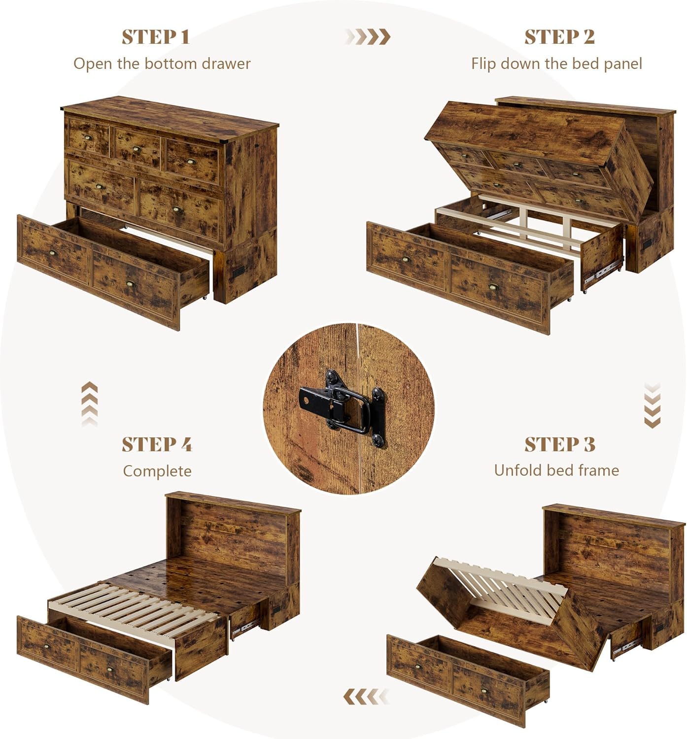 - 【Functional & Practical】Murphy bed's innovative folding design effortlessly transforms between cabinet and a full-size bed. When stored, it sits completely flush within the cabinet to maximize floor space—perfect for small apartments, studios, or multi-functional rooms