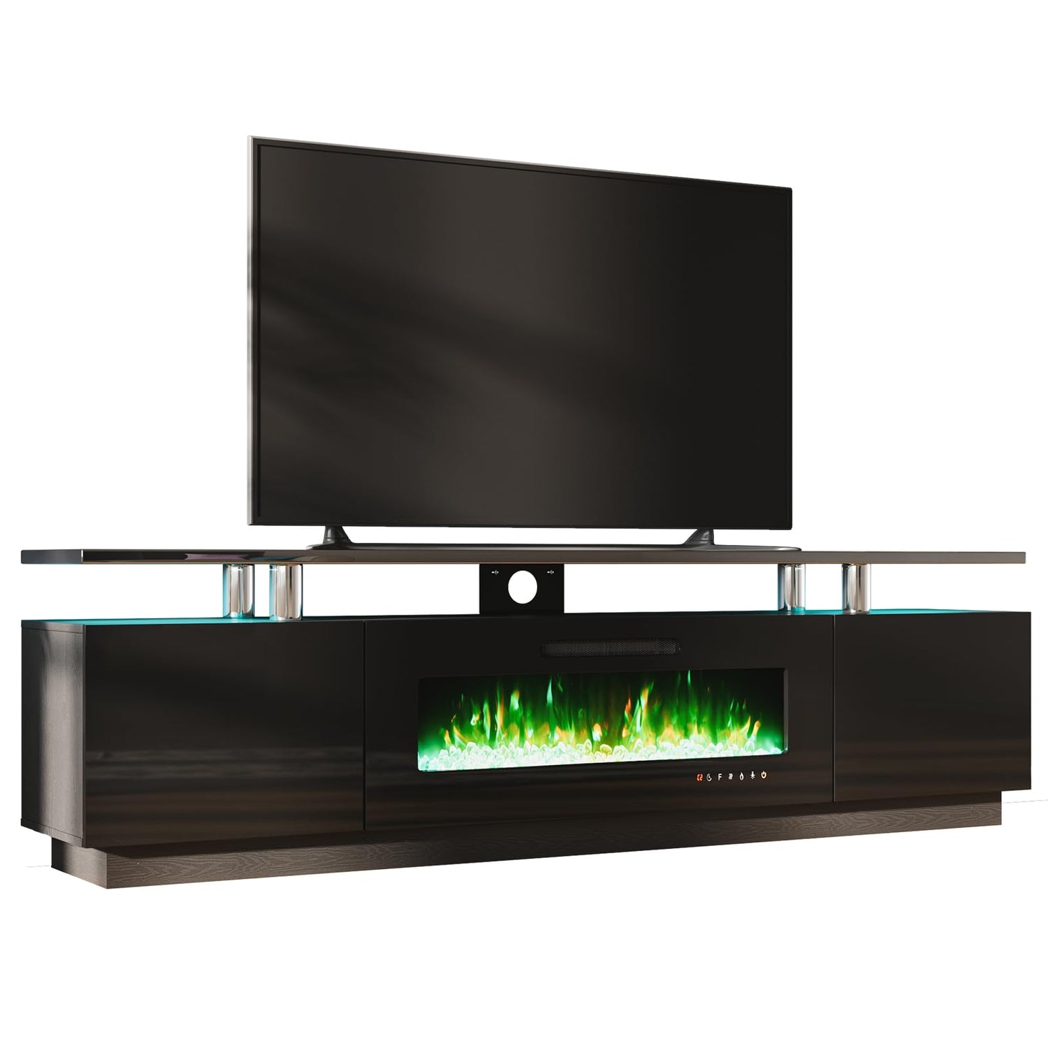 AMERLIFE Fireplace TV Stand with 40" Fireplace, 80" Modern High Gloss Fireplace Entertainment Center LED Lights, 2 Tier TV Console Cabinet for TVs Up to 90", Obsidian Black
