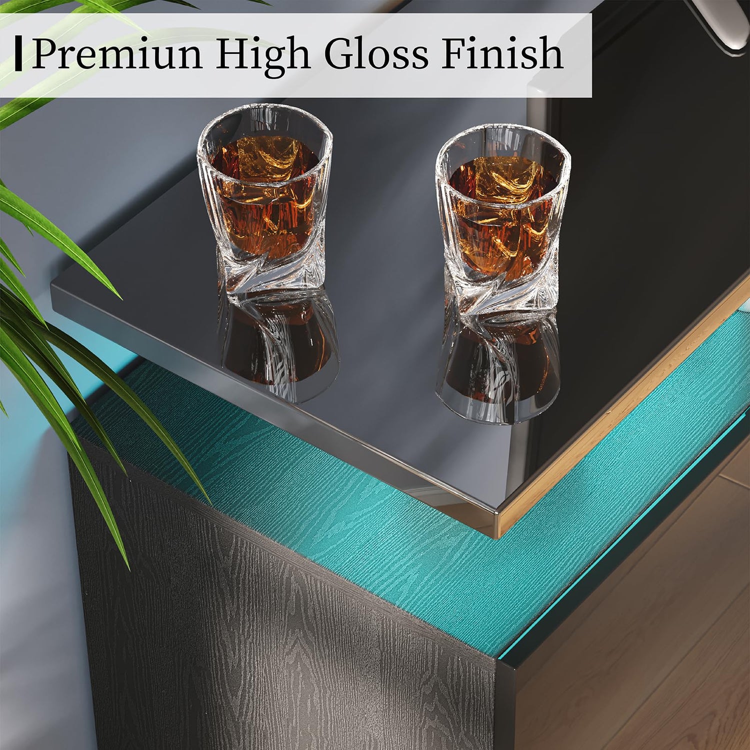 - 80" Wide high-gloss shelves and doors plus wood-grain body show luxury and modernity. LED kit includes 12 changeable colors and 96 kinds of color combinations to custom a personalized dazzle lighting atmosphere and unique experience