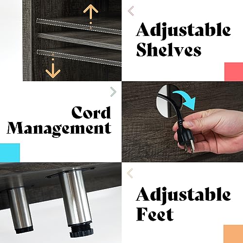 - Classic rustic grey woodgrain finish performs a traditional&modern look. 3PCS adjustable&removable shelves for convenient and flexible storage and display.