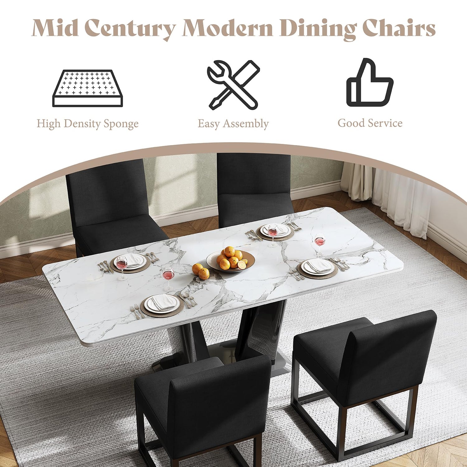 AMERLIFE Mid Century Linen Dining Chairs Set of 6, Modern Upholstered Dinner Chairs with Metal Frame for Restaurant, Dining Room, Kitchen, Black Padded Chairs