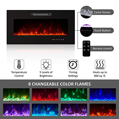 - 40" wide tv console fireplace clearance features touch button, 8 unique realistic flames (C1 is a cyclic gradient color) & 5 levels of brightness, temperature control, time setting. Remote control included.