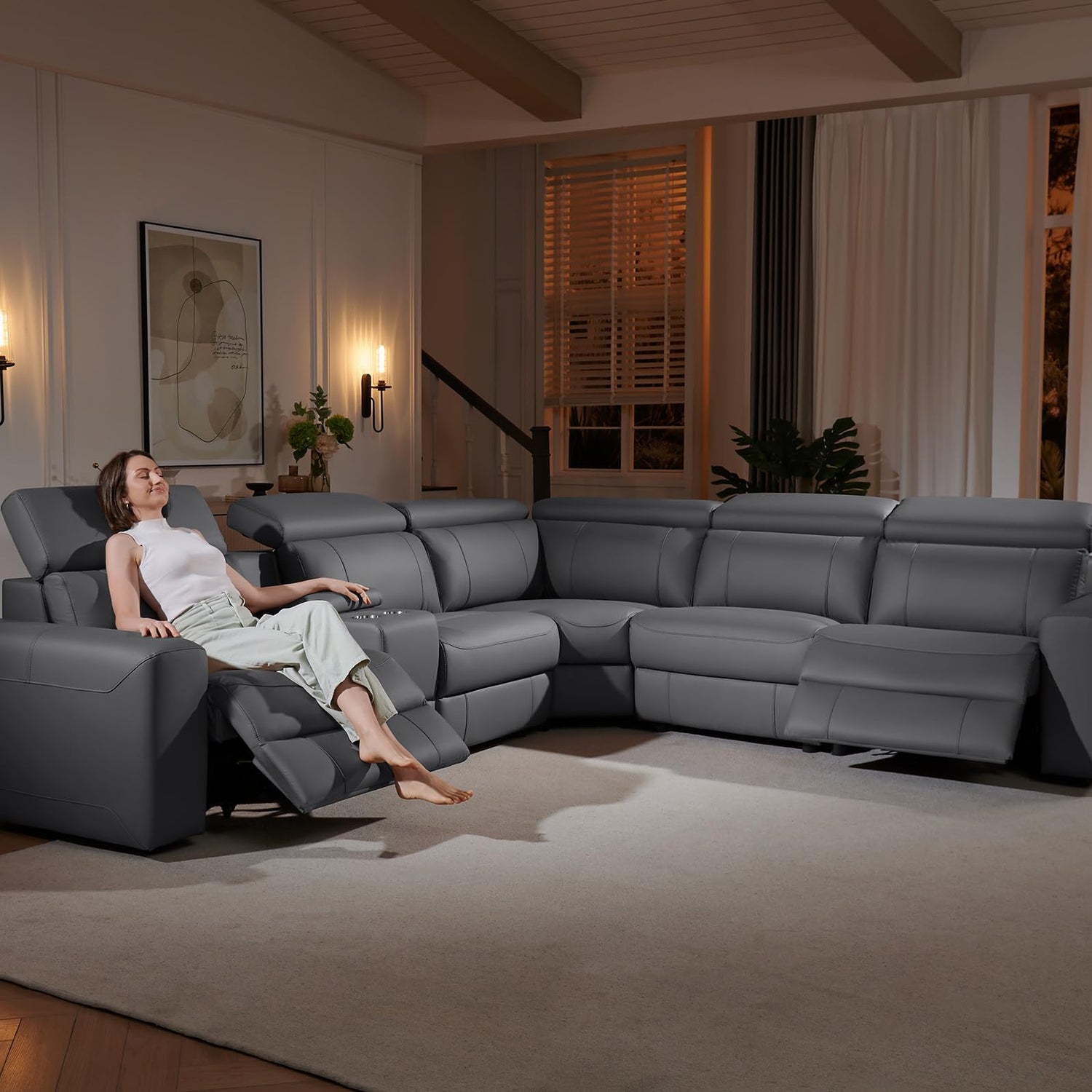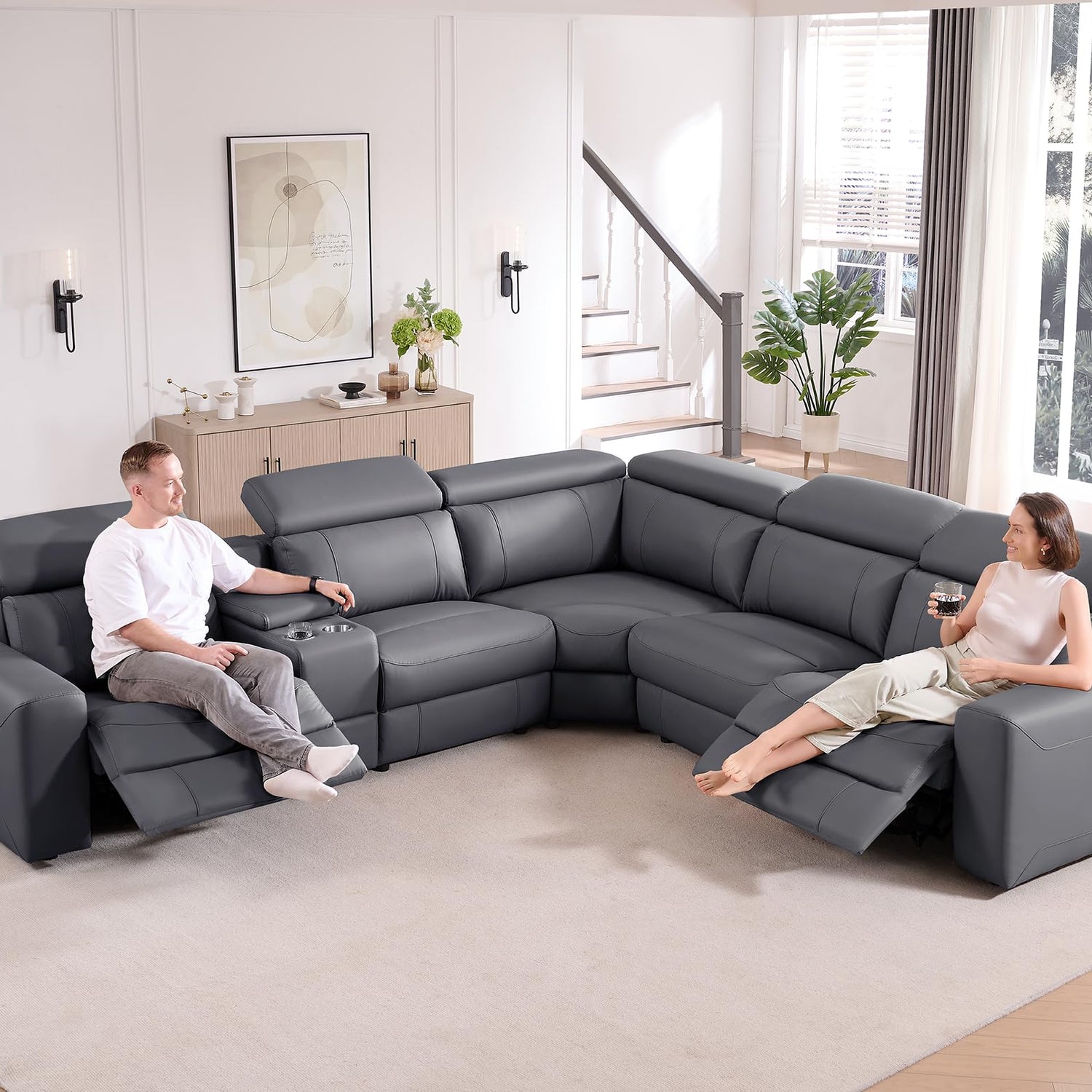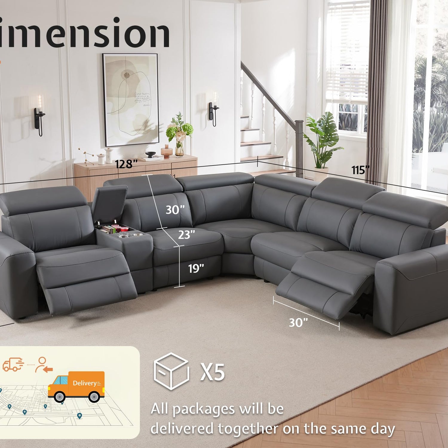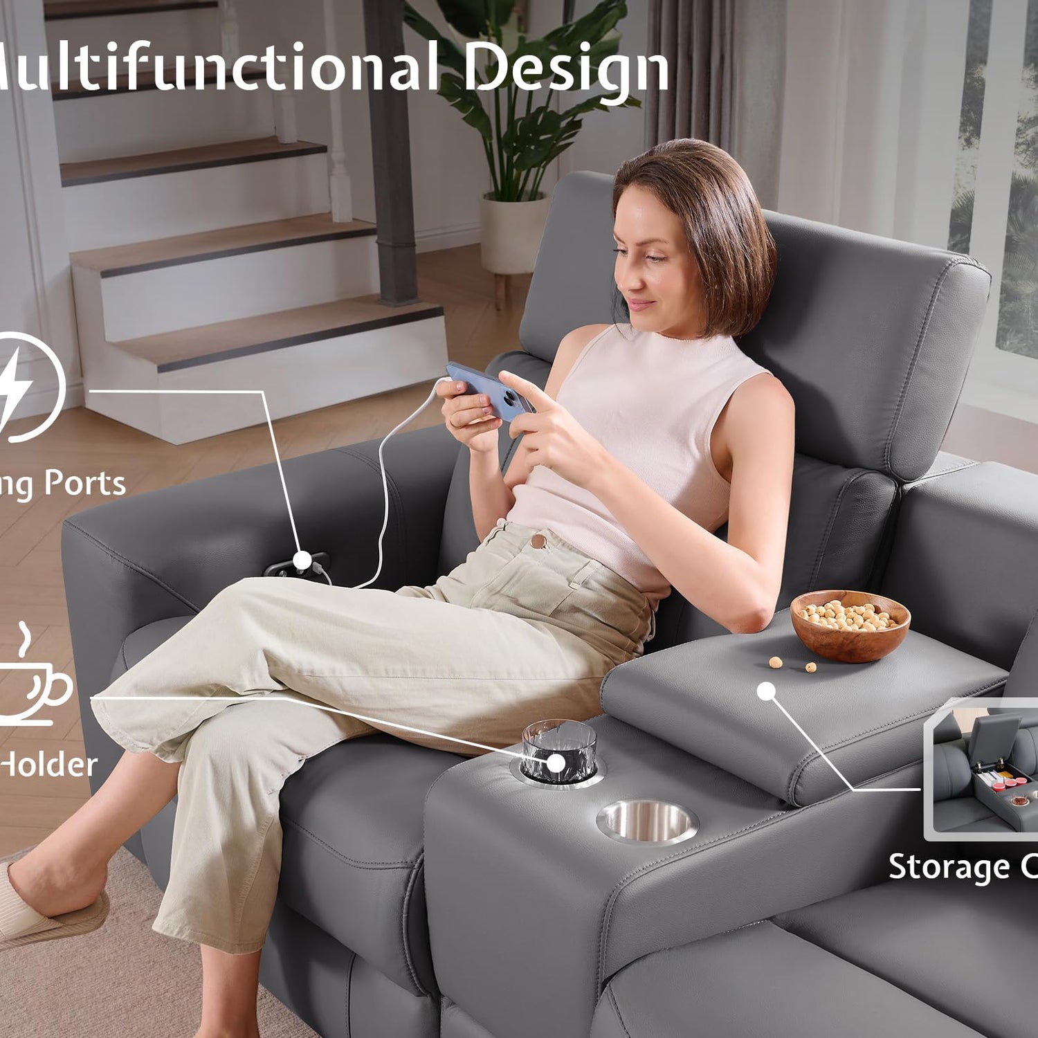 • Console with Cup holder & Storage: The electric sectional sofa includes a wide console equipped with a convenient cup holder and hidden storage space. Keep your beverages close and your living area tidy and organized with added storage for small items.