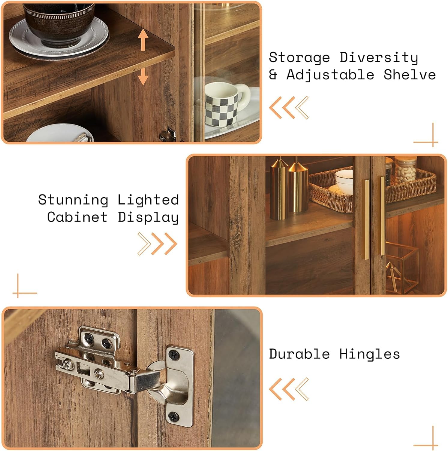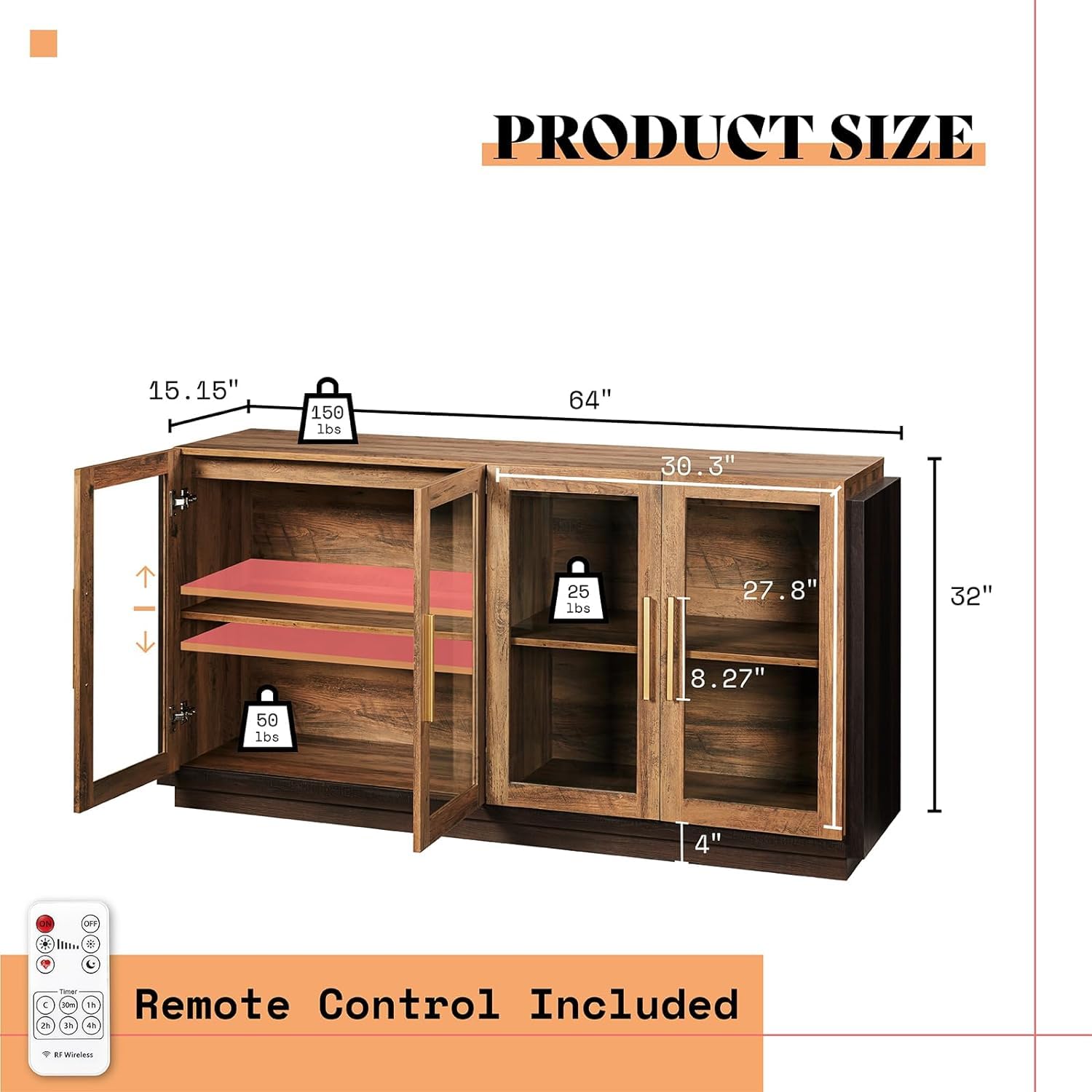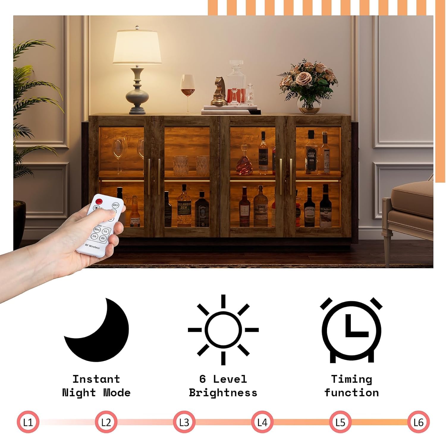- [Smart LED lights] The LED lights of the sideboard cabinet have an instant night mode and 6 brightness levels that are adjustable from dark to bright. Remote and timing functions for lighted shelves meet different needs.