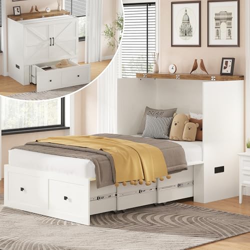 - 【Murphy Bed Cabinet】Folds out into a comfortable twin bed or closes into a compact storage cabinet, helping maximize space in guest rooms, home offices, or small apartments. Mattress not included