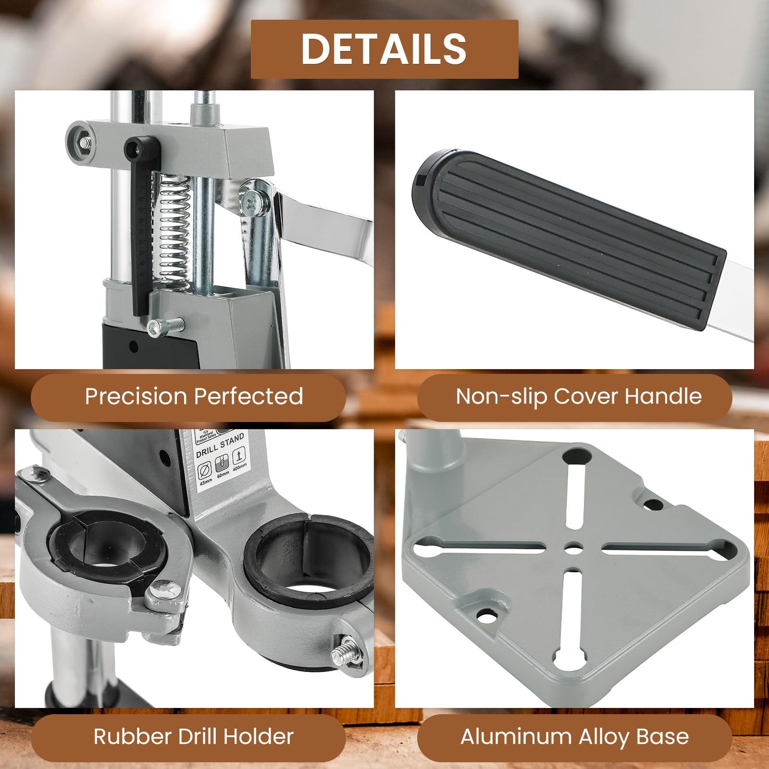 - Precision and Stability: Our Drill press stand ensures precision and stability during your drilling tasks. Crafted from high-quality aluminum alloy base and a solid carbon steel column bar, this tool provides excellent concentricity, minimizing vibrations and reducing deviations. Achieve accurate drilling results every time.