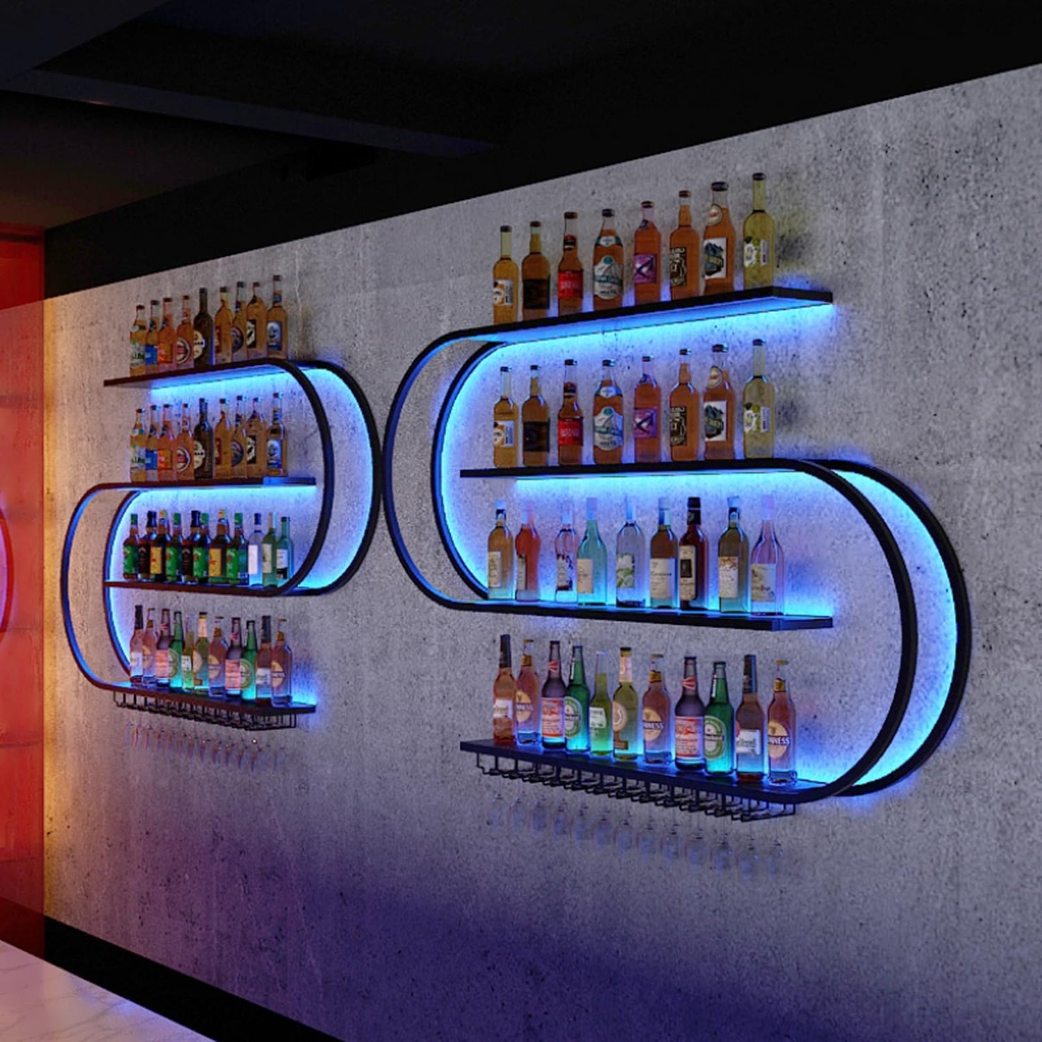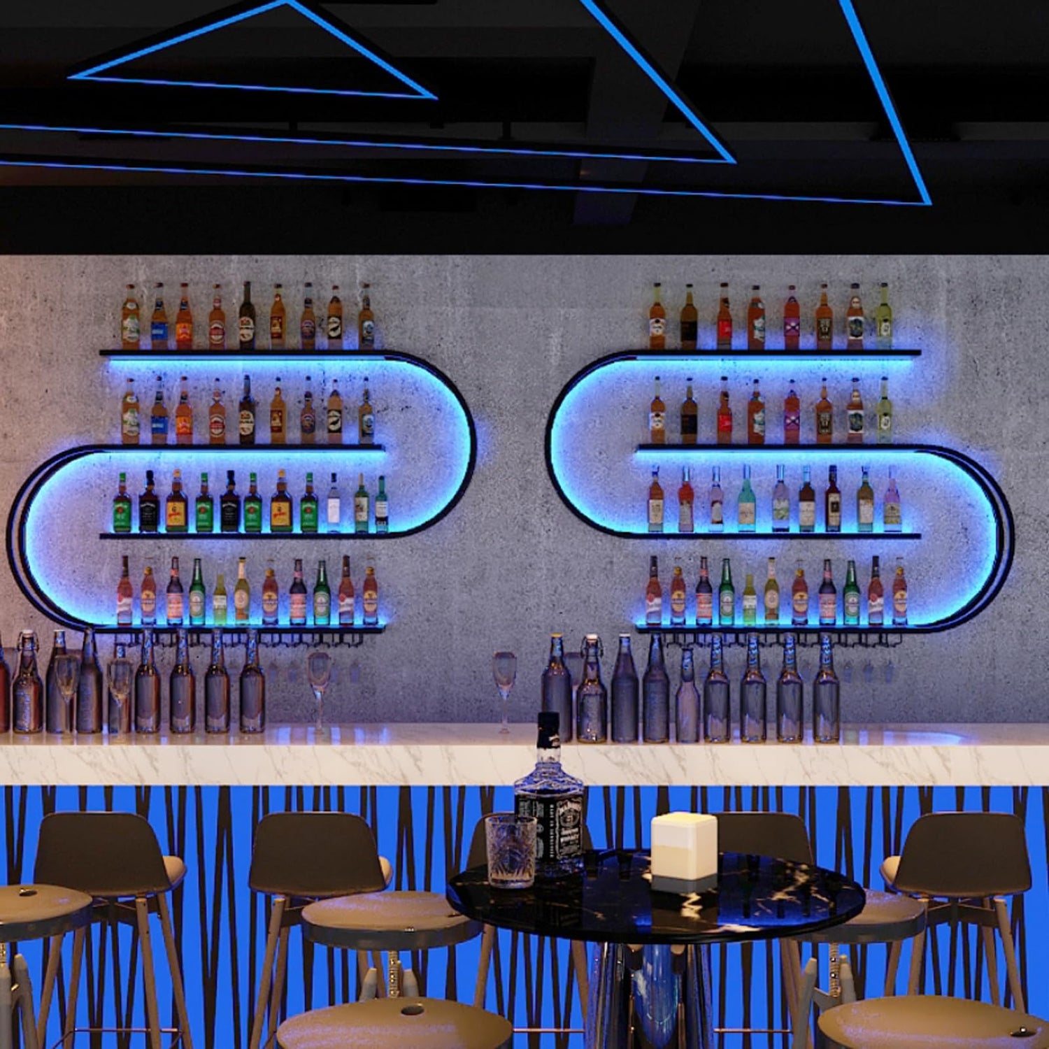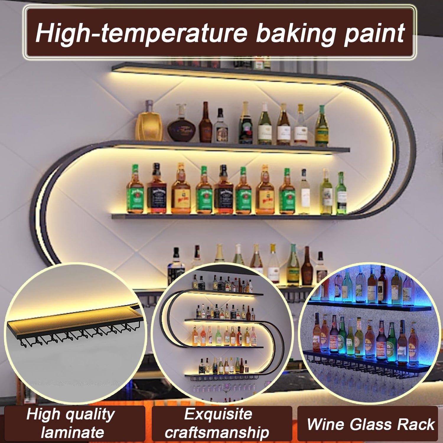 - 【Unique Half Circle Design】Semi-circle wine rack can be used as both bar decoration and wine storage cabinet. This height can store most wines or spirits when we sit at the small bar to relax from the day's fatigue or have a party. The wine glass rack is sturdy enough to hold more wine glasses. The wine rack is also a large storage shelf that makes the space look neat and organized