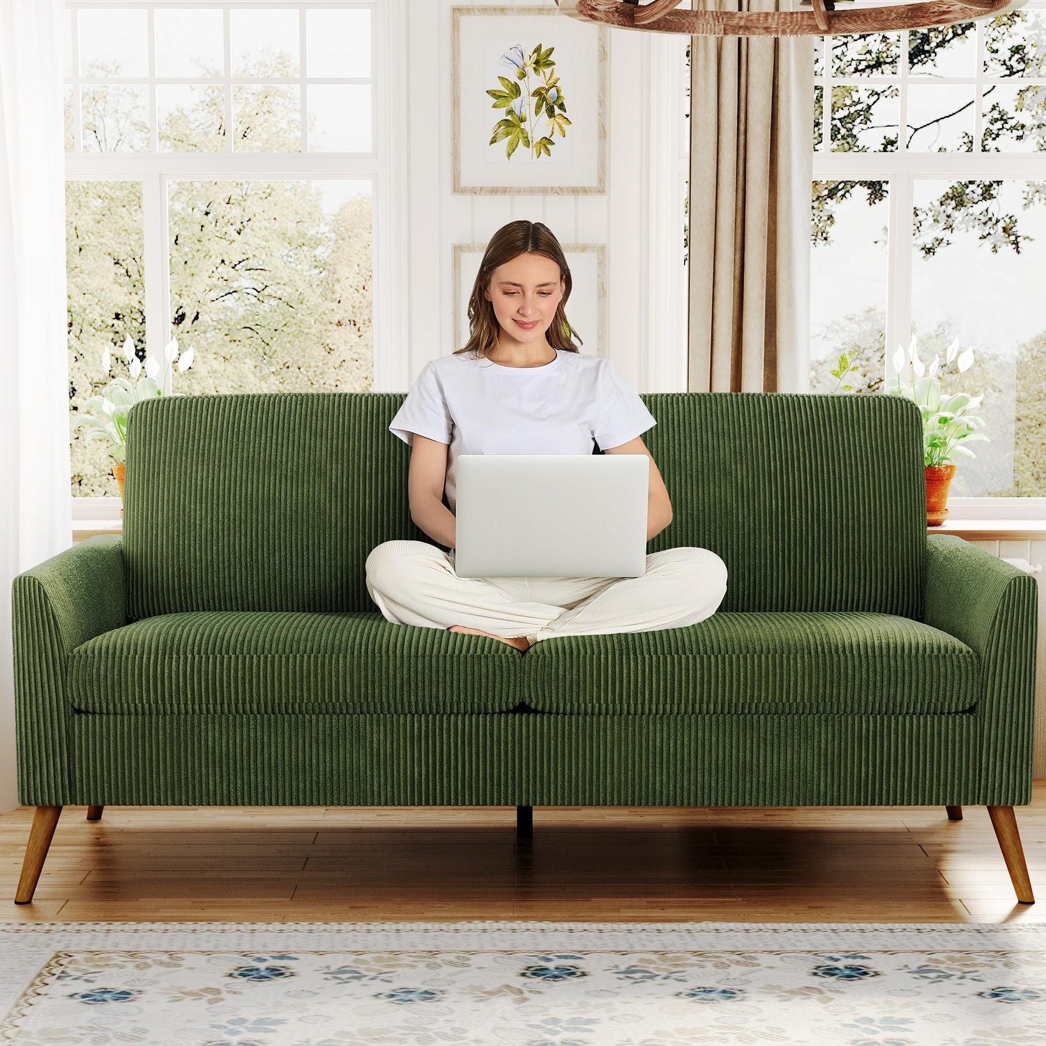 AMICLIBER 68" Loveseat Sofa, Comfy Green Corduroy Couches for Living Room, Mid Century Modern Love Seat Sofa, Tool-Free Setup Small Couches for Bedroom Office