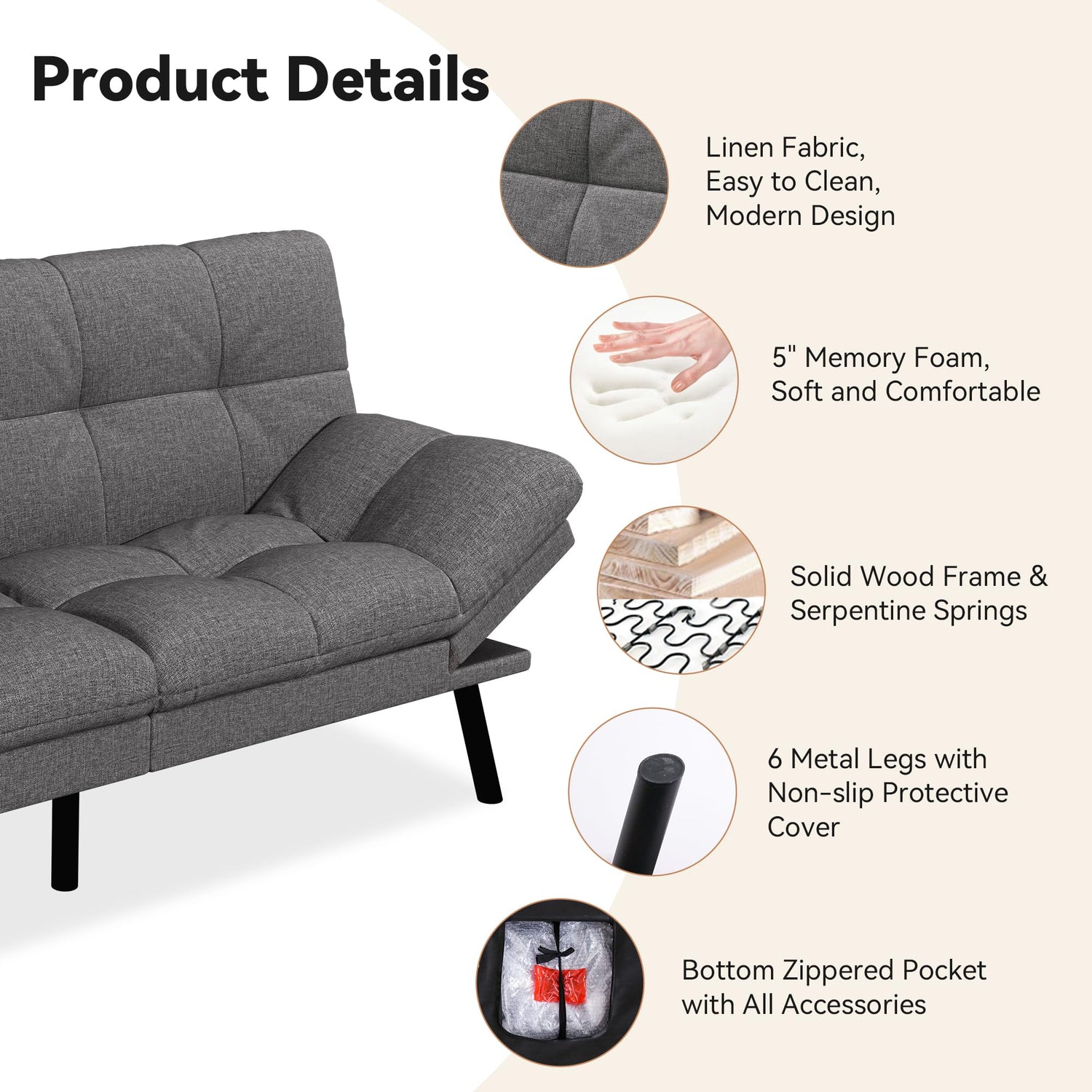 - 【High Quality Material】: The 3 inches of memory foam and support foam filling effectively disperse pressure, enhancing your sleeping comfort. Our sofa bed is meticulously designed to provide you with the utmost comfort. The premium linen fabric is luxuriously soft to the touch and resistant to aging, ensuring a comfortable experience for years to come.