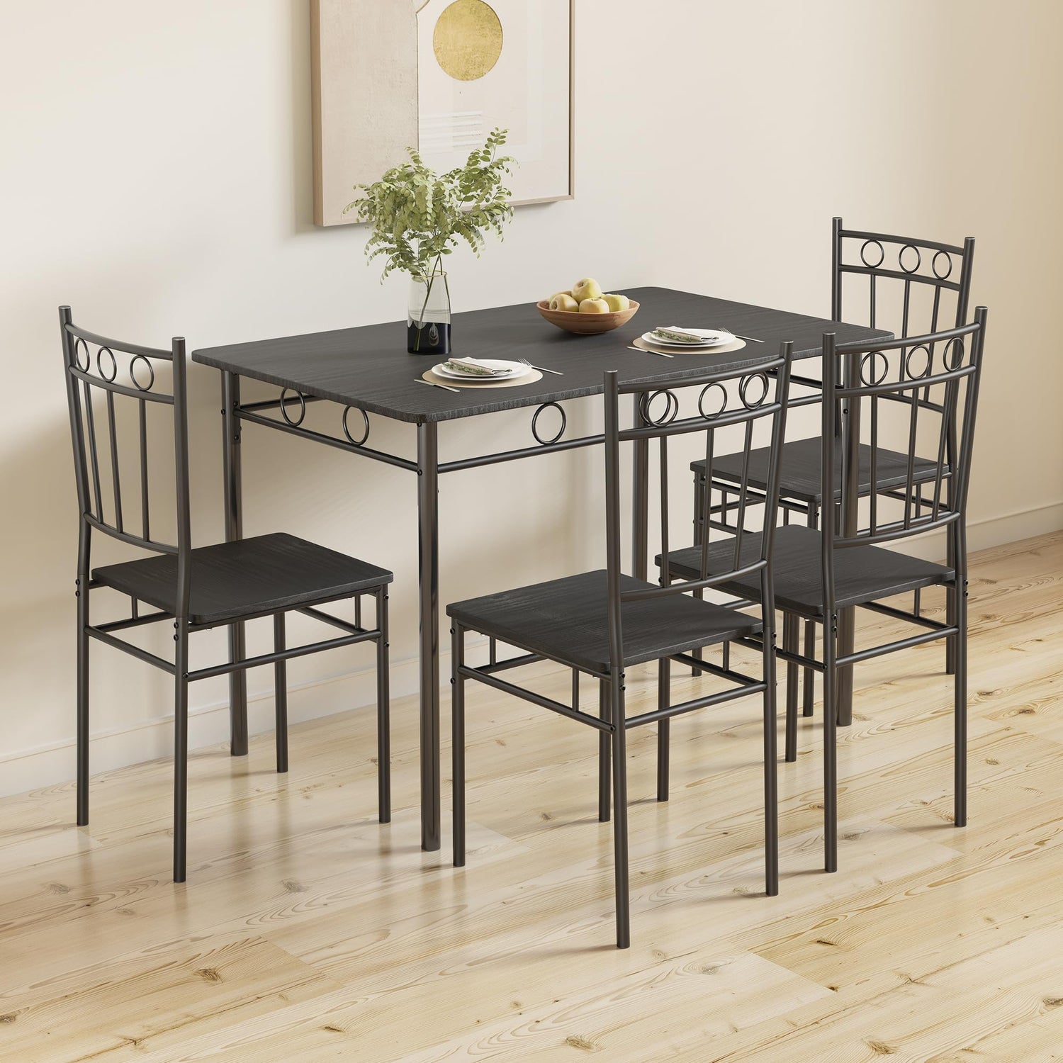 - 【Perfect for Families】: The dining table for four people consists of a rectangular dining table with dimensions of 43.3 "x 26.8" x 29.3 "(L x W x H) and four chairs with dimensions of 16.1”x 14.6”x 34.3” (L x W x H), which is suitable for small to medium-sized gatherings and family meals at home. Moreover, it can serve as a work table or a game table as per your requirements.