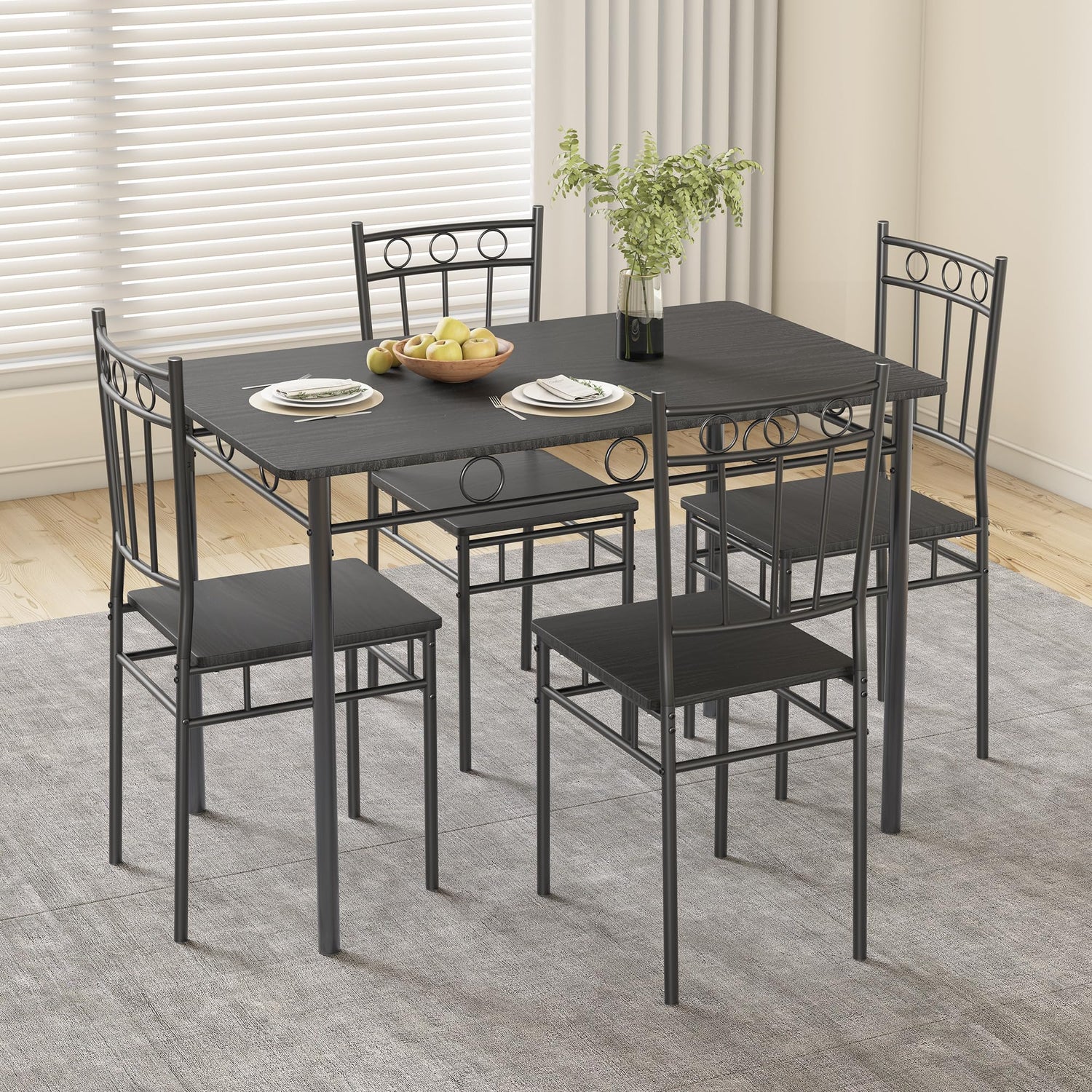 AMICLIBER Dining Table Set for 4, 5-Piece Kitchen Table and Chairs, Rectangular Dining Room Table Set with 4 Chairs, Space-Saving Kitchen Table Set for Small Space,Dinette,Apartment,Pure Black