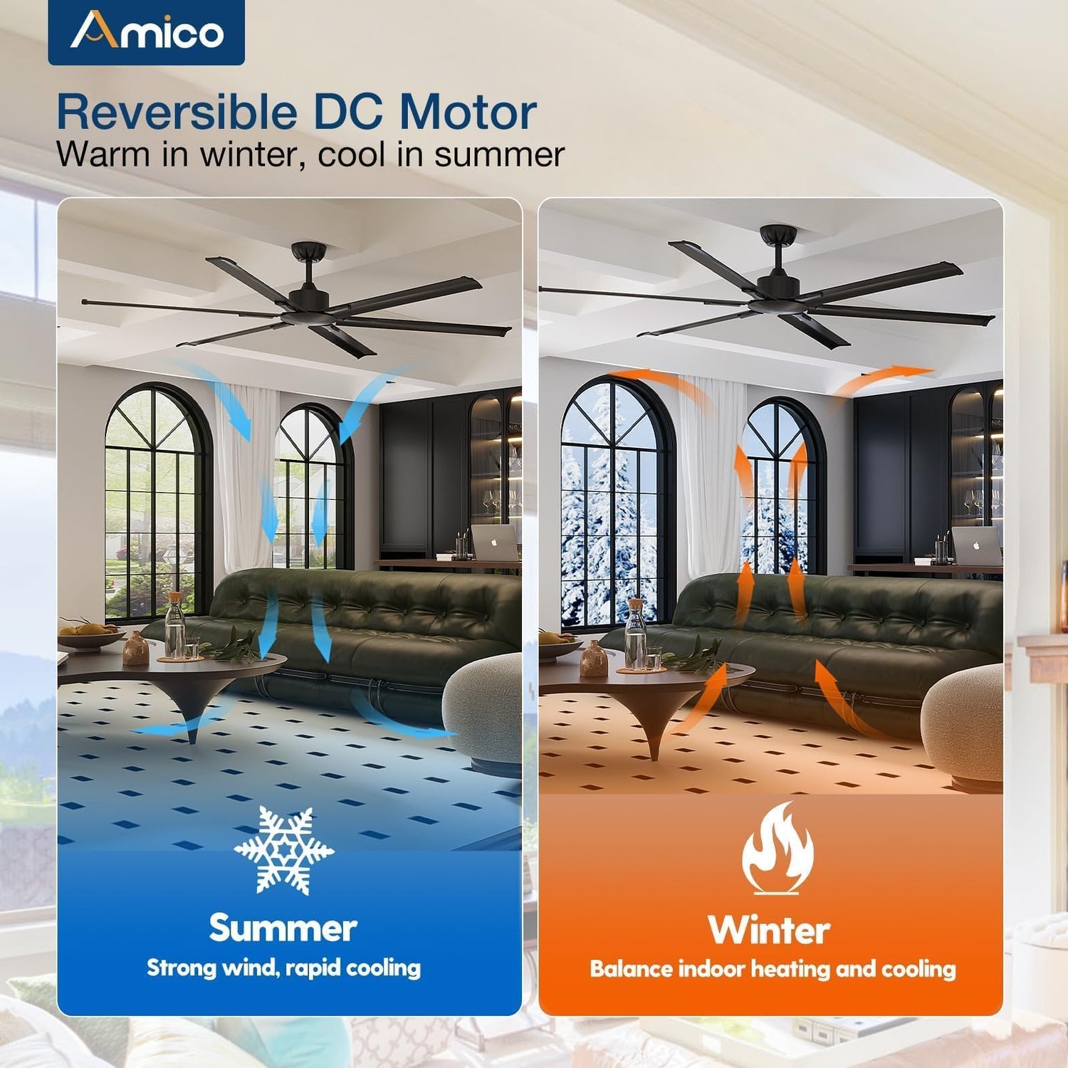 - Ceiling Fan without Lights: Decorate your home with Amico ceiling fan! Our 100 inch industrial ceiling fan has A energy efficiency rating, which can avoid 80% of electricity loss compared with traditional fans. Suitable for farmhouse, living room, bedroom, office, study, kitchen or other indoor/outdoor spaces. (Not to be exposed directly to rain).
