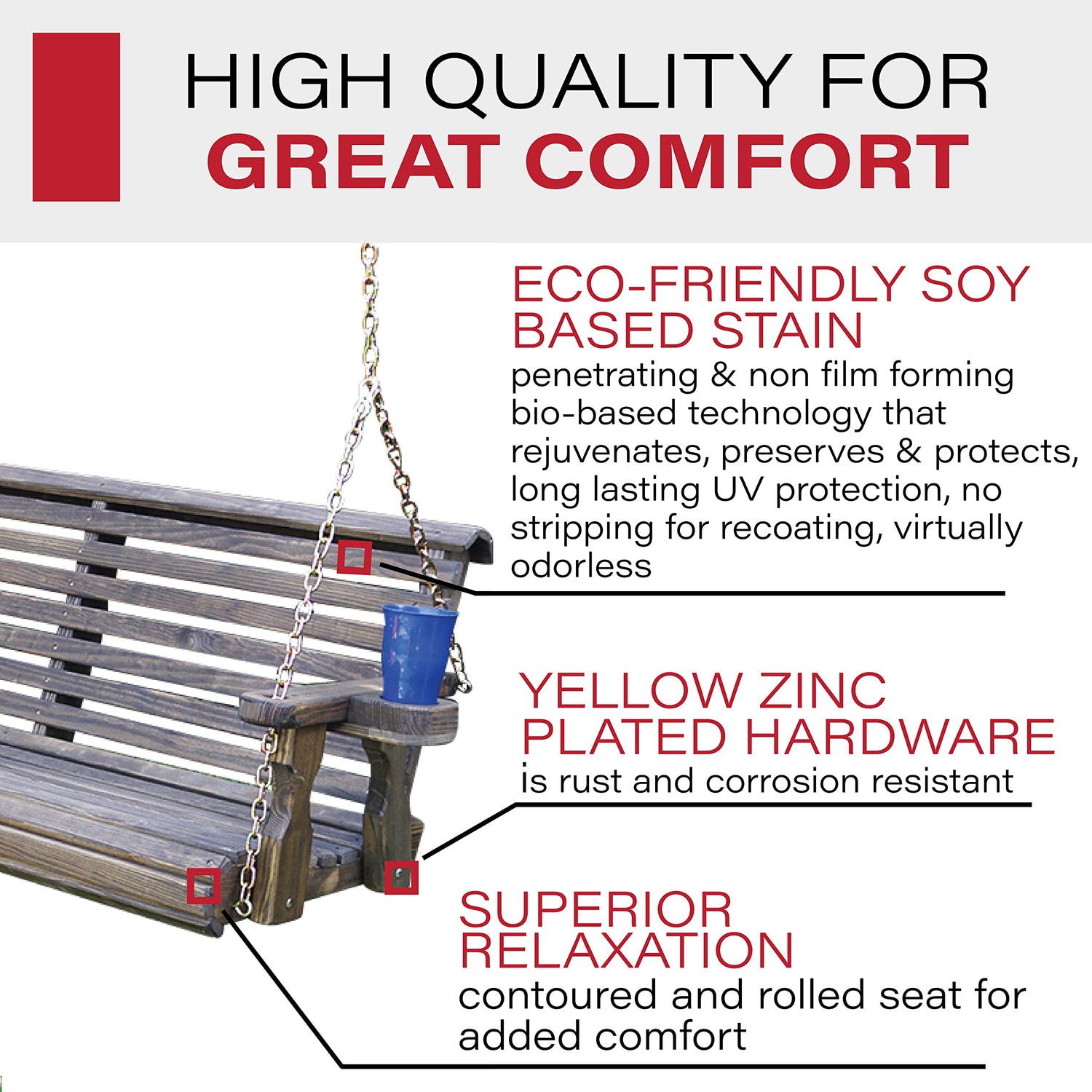 Amish Casual Heavy Duty 700 Lb Roll Back Treated Porch Swing with Hanging Chains and Cupholders (5 Foot, Dark Walnut Stain)