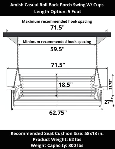 Amish Casual Heavy Duty 800 Lb Roll Back 5ft. Treated Porch Swing with Cupholders - Cedar Stain
