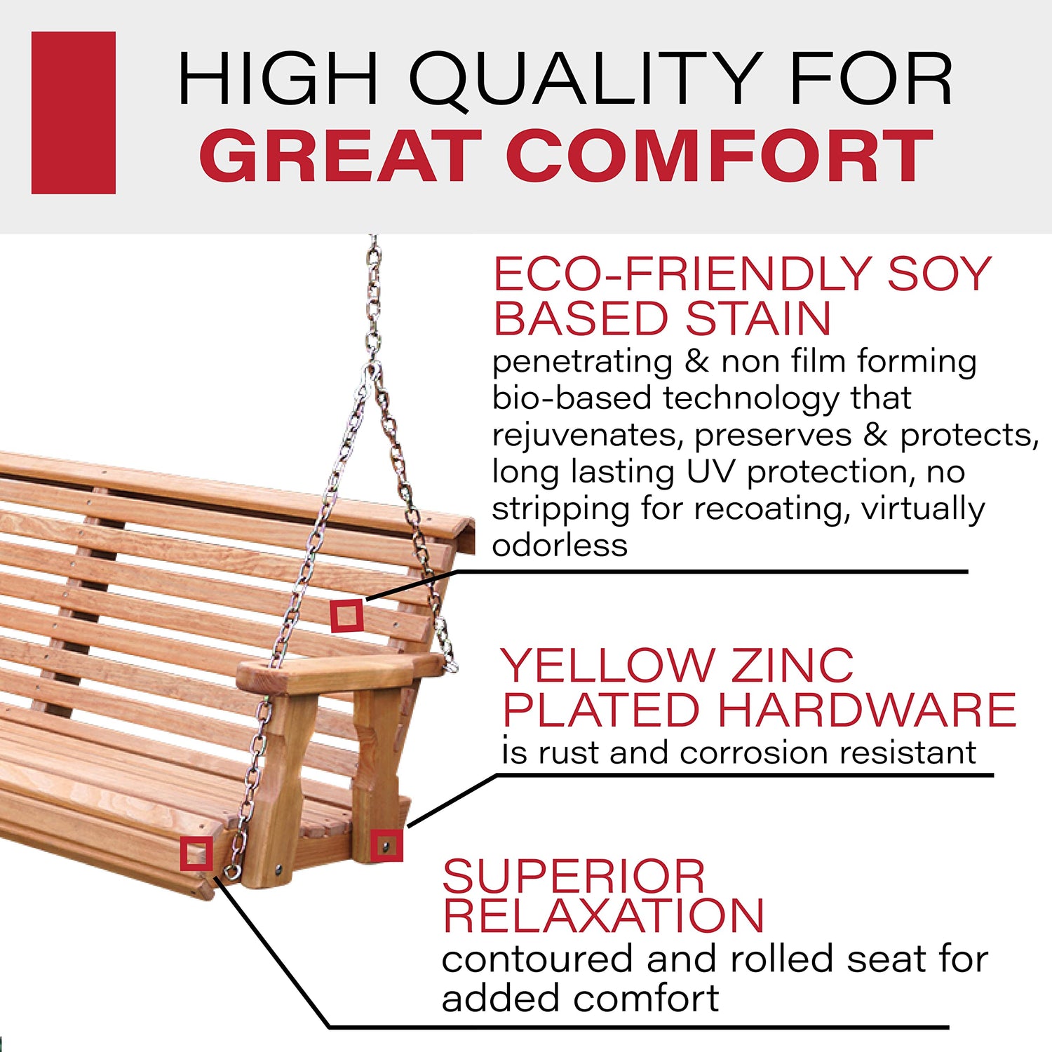 Amish Casual Heavy Duty 800 Lb Roll Back Treated Porch Swing with Hanging Chains (4 Foot, Cedar Stain)