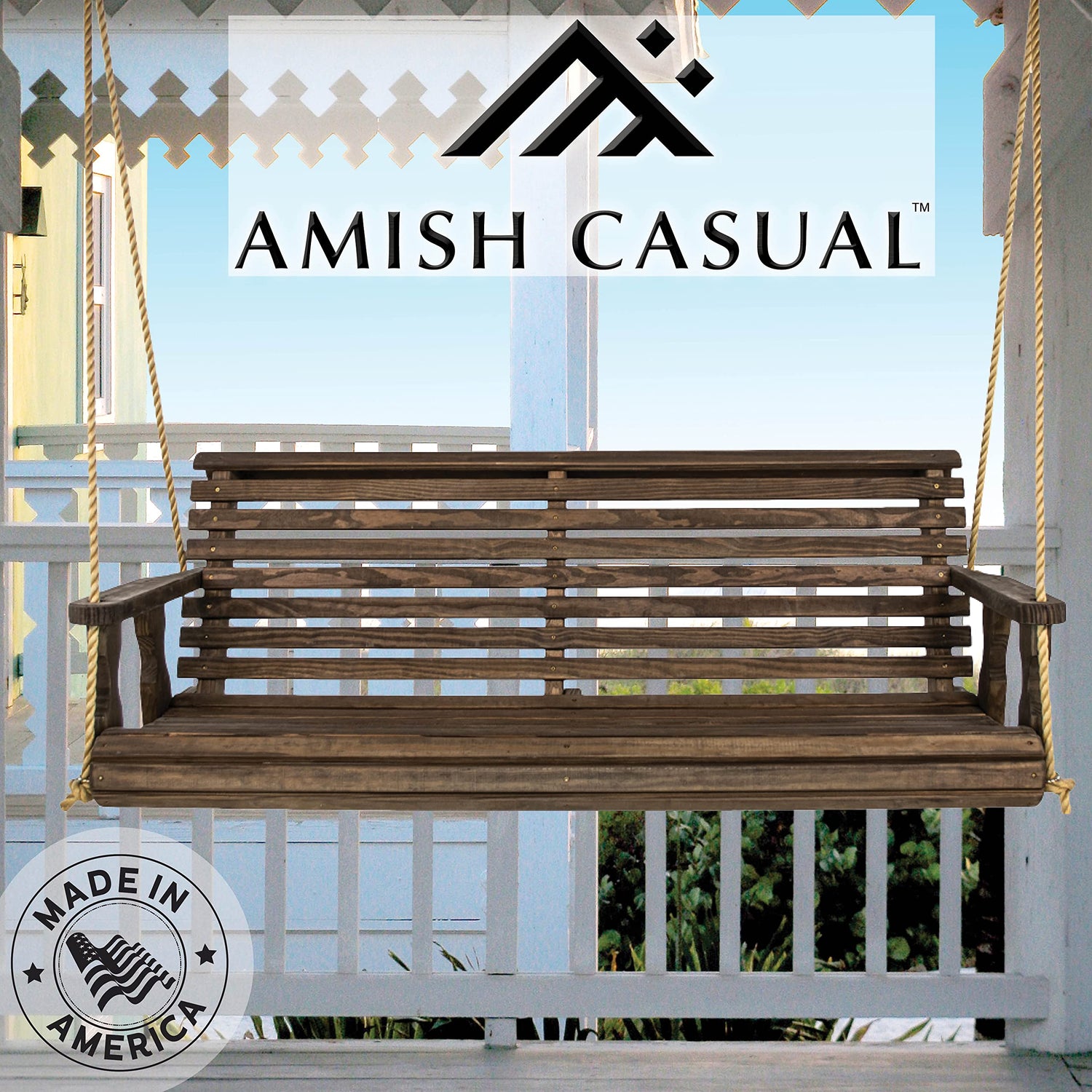 Amish Casual Heavy Duty 800 Lb Roll Back Treated Porch Swing with Hanging Ropes (5 Foot, Dark Walnut Stain)