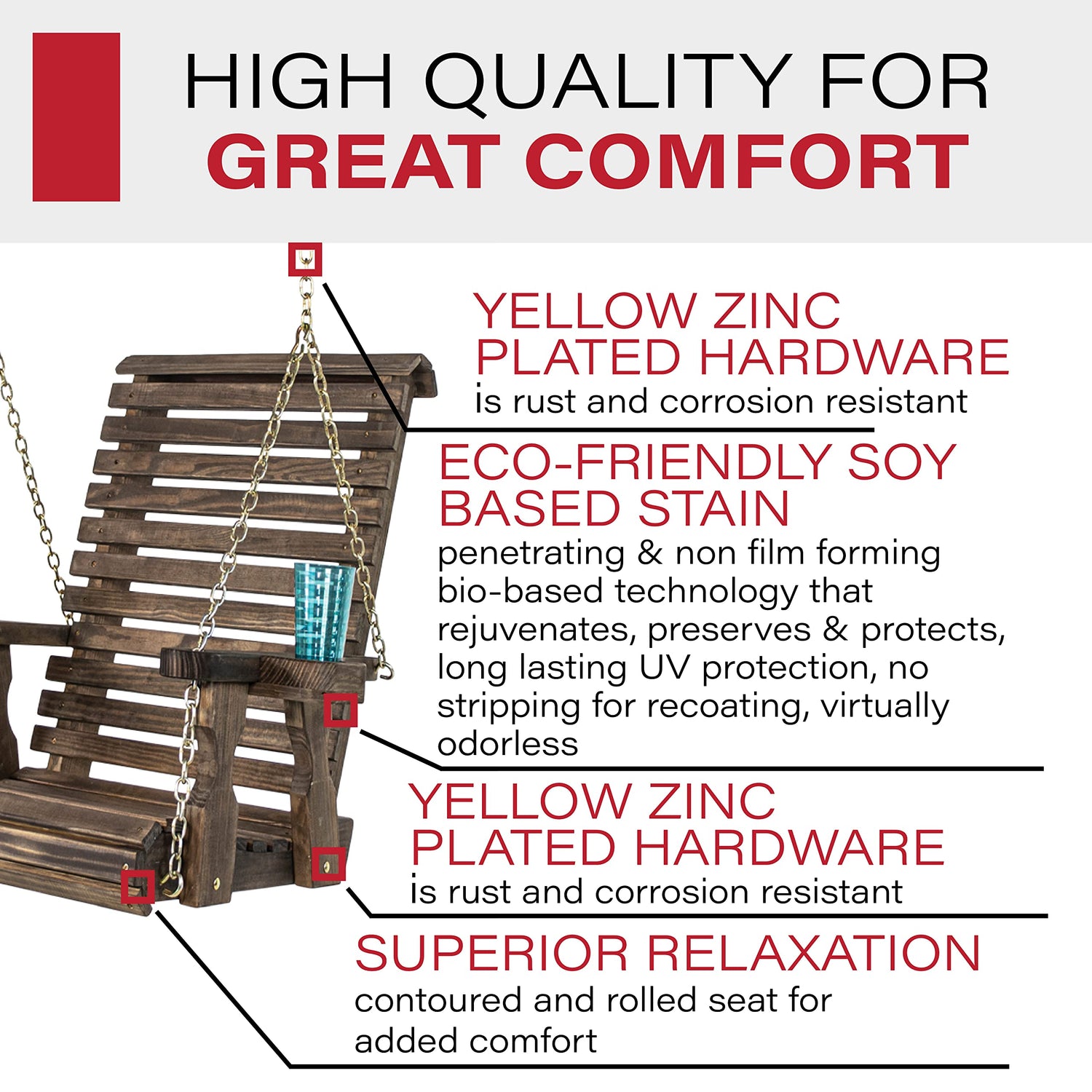 Amish Casual Heavy Duty Roll Back Pressure Treated Swing Chair with Cupholders (Dark Walnut Stain)