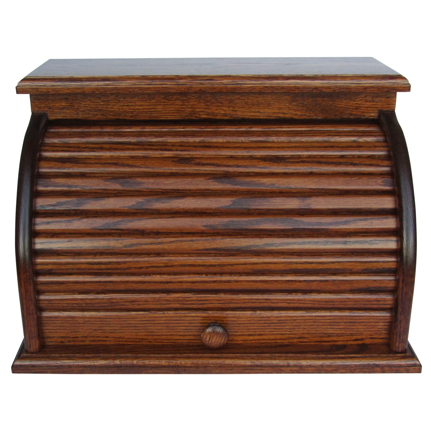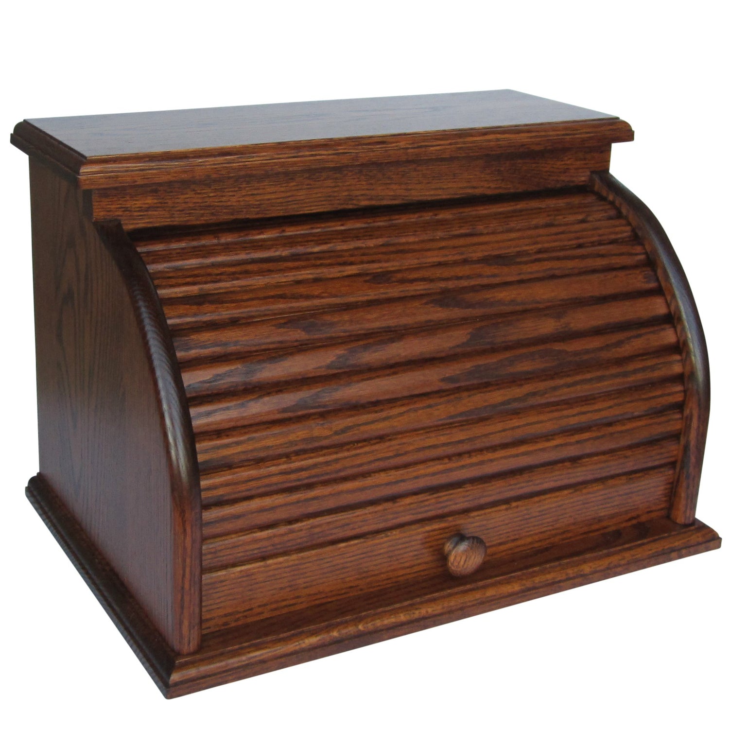 Details: Notice the Attention to Detail on this Solid Wood Bread Storage Box. It is Amish Handcrafted in Holmes, County Ohio. Featuring a Roll Top Front with Wooden Knob and Finished