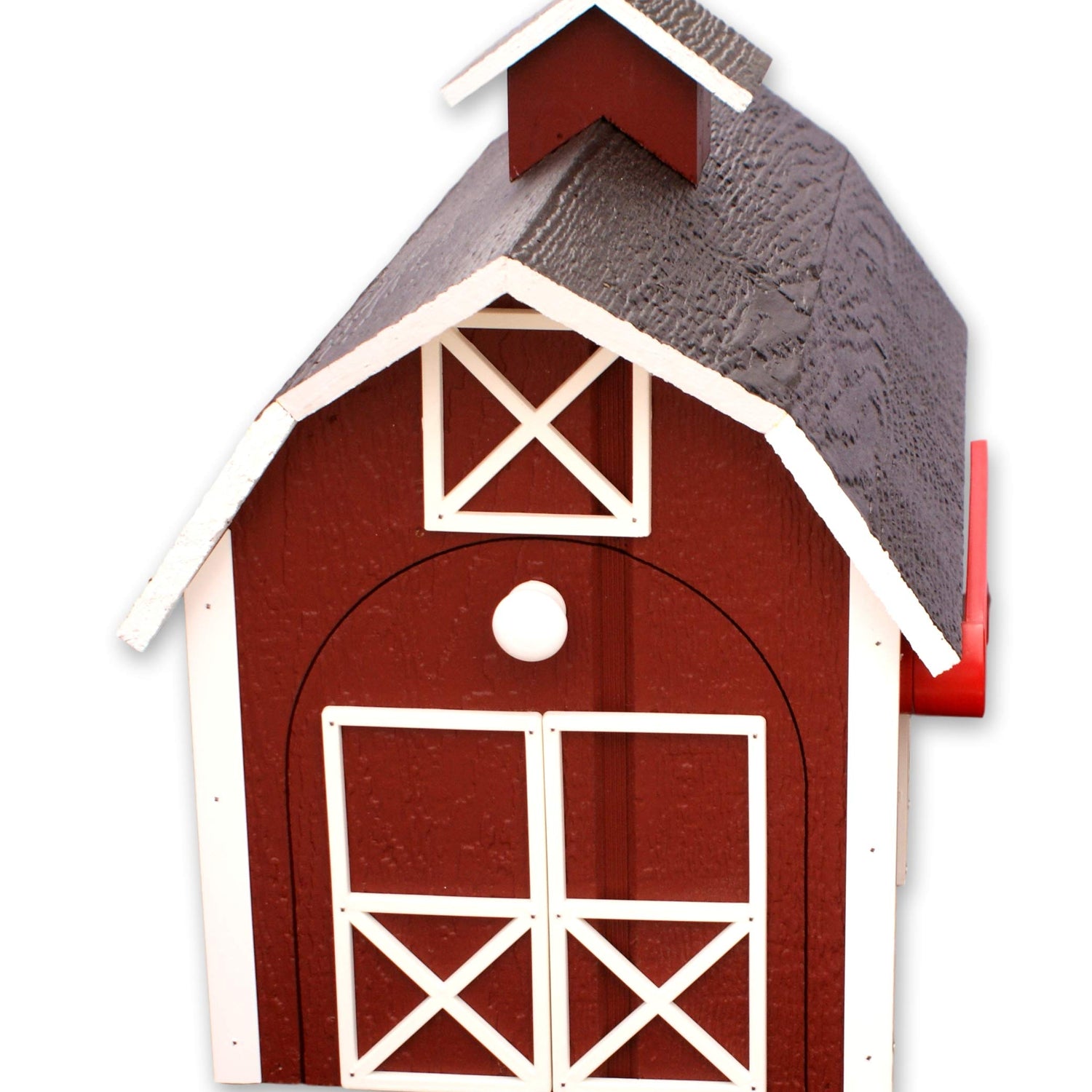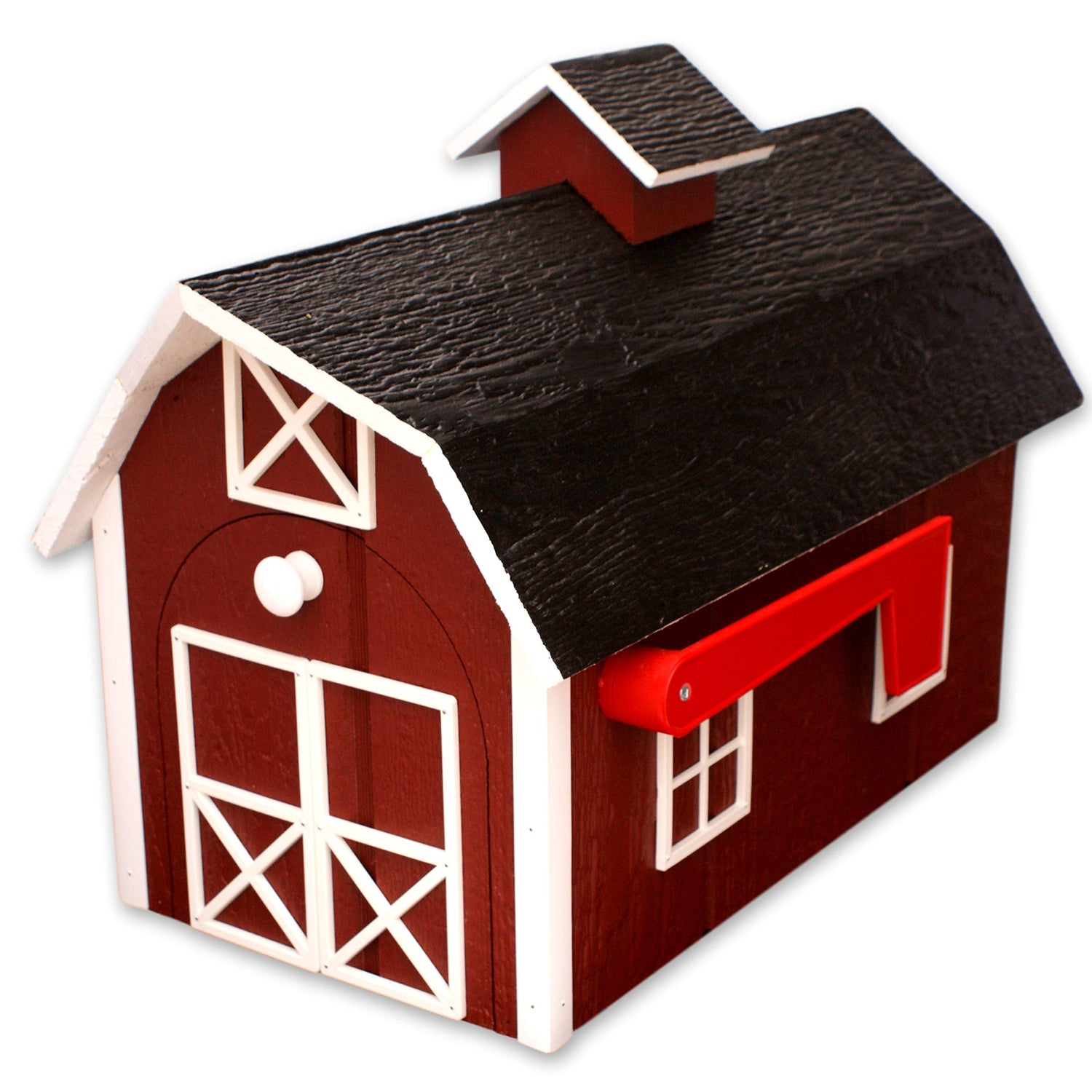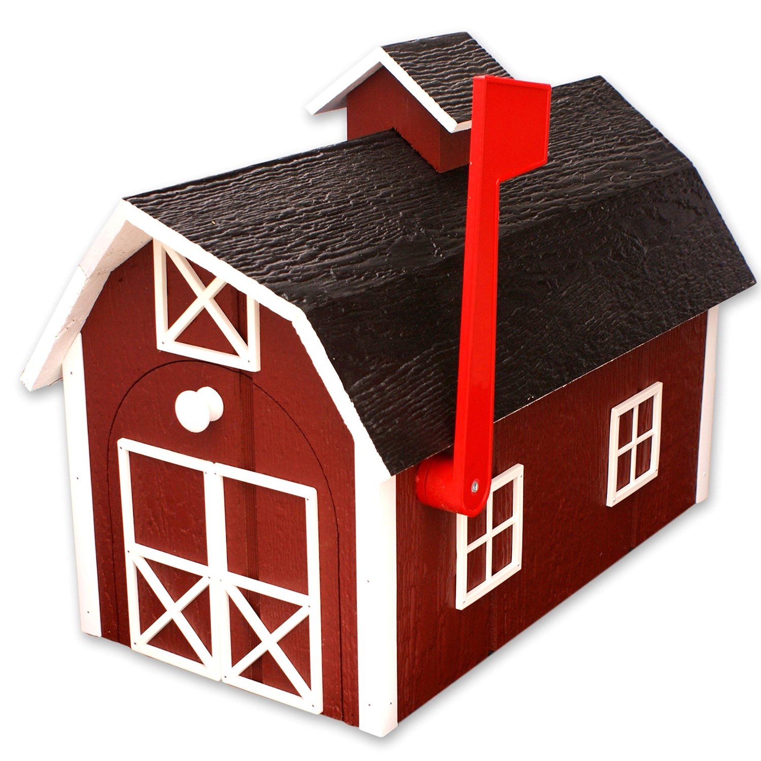 AmishToyBox.com Deluxe Wooden Mailbox, Dutch Barn Style (Red with White Trim)