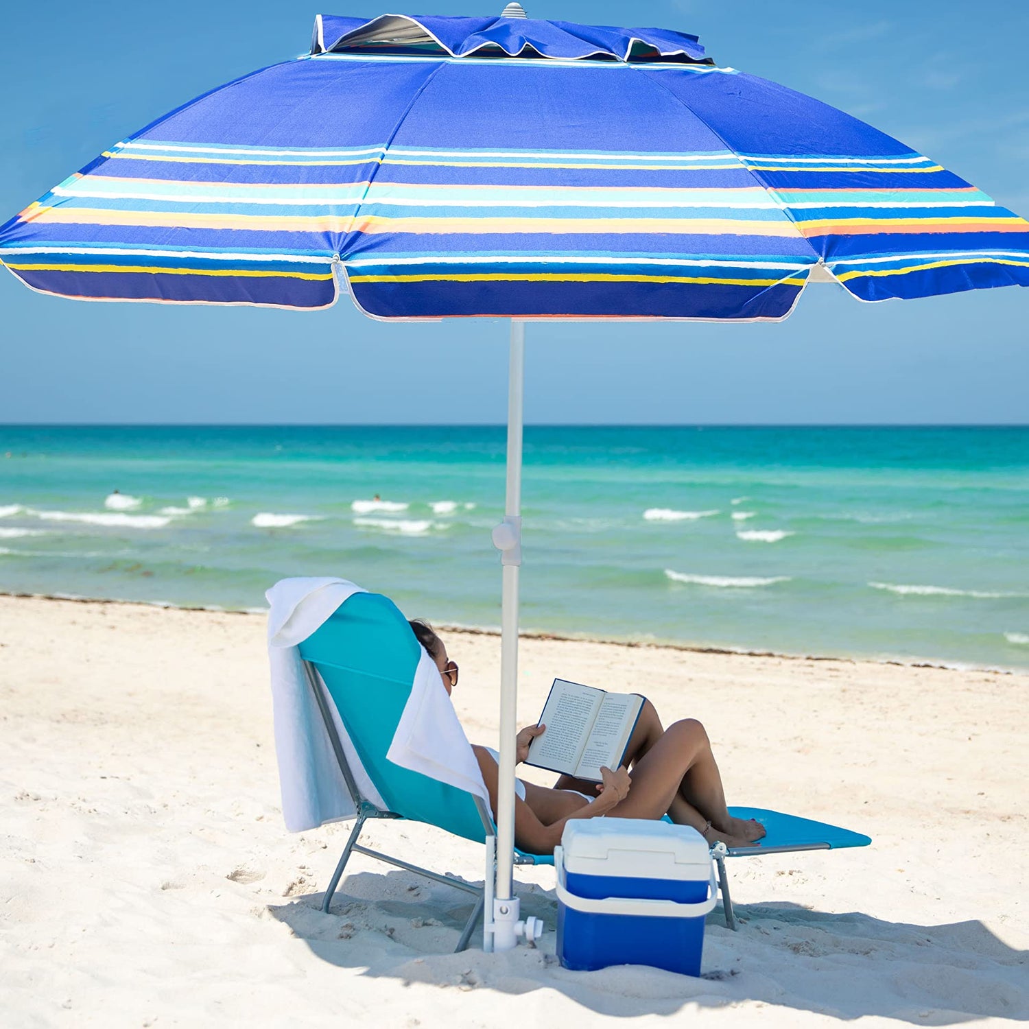 - WITH PORTABLE REMOVABLE SAND ANCHOR: The 7ft beach umbrella with a portable sand anchor that can help you twist your shade umbrella into the sand or dirt quite easily and stronger anchor