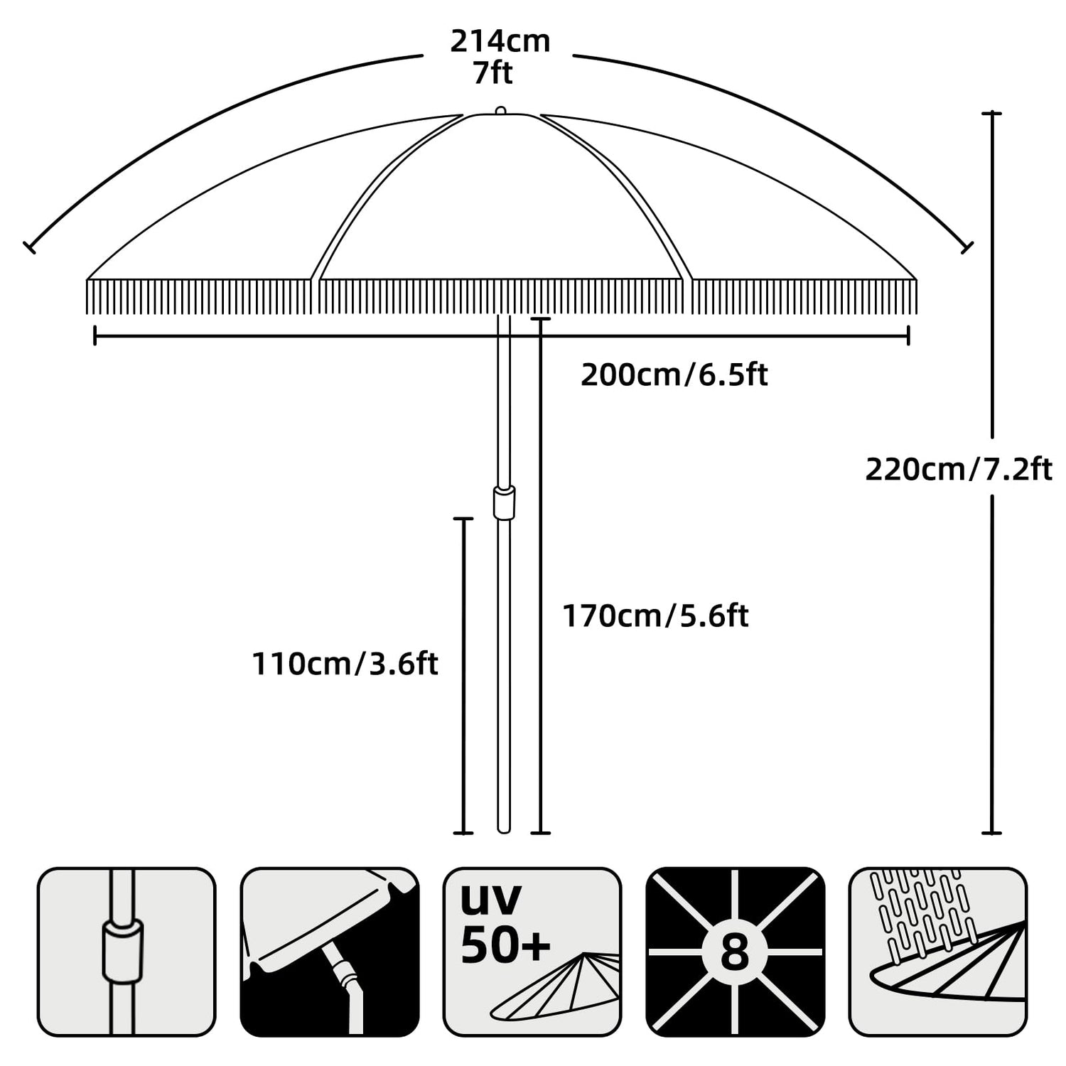 - ☂ 1.26/1.38'' steel pole and 8 steel ribs provide elegance and superior strength support-Allow the umbrella stability in windy conditions.