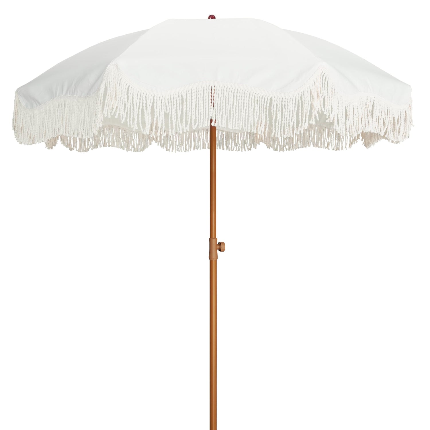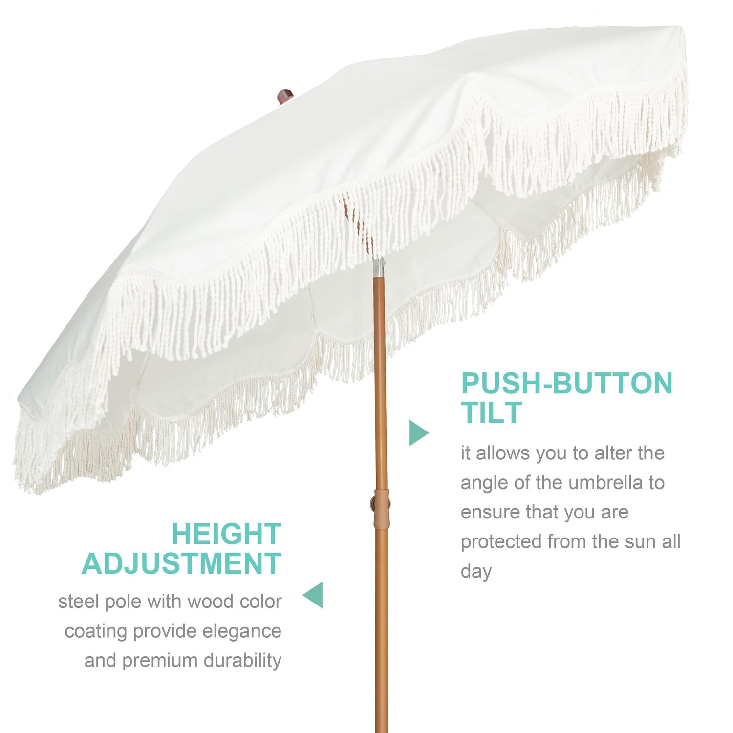 AMMSUN Boho Fringe Umbrella Outdoor Patio, 6.5ft UPF50+ Picnic Umbrella with Tassels with Steel Pole and Push Button Tilt, Antique White