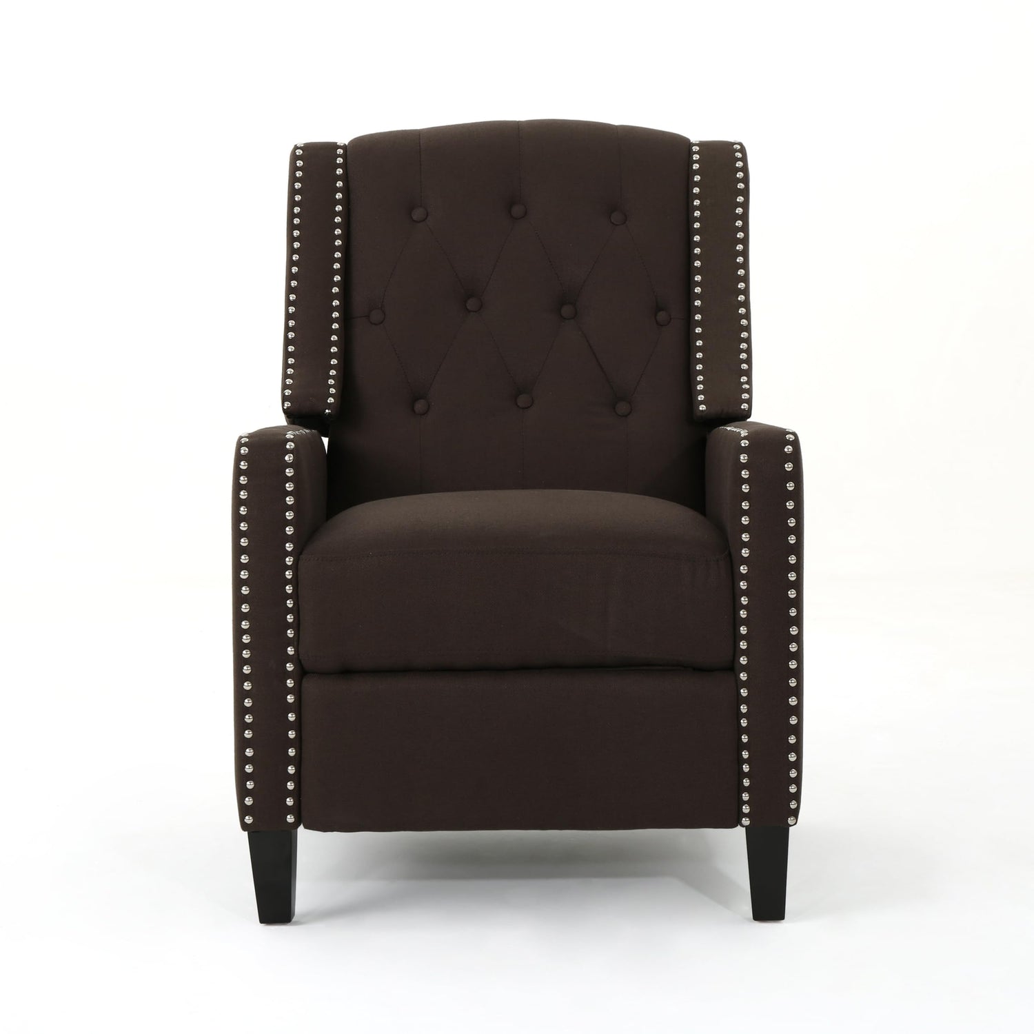 AMNOOI Classic Fabric Push Back Recliner Chair – Premium Birch Wood Legs & Riveted Armrests for Timeless Comfort | Modern & Traditional Home Decor (Coffee)