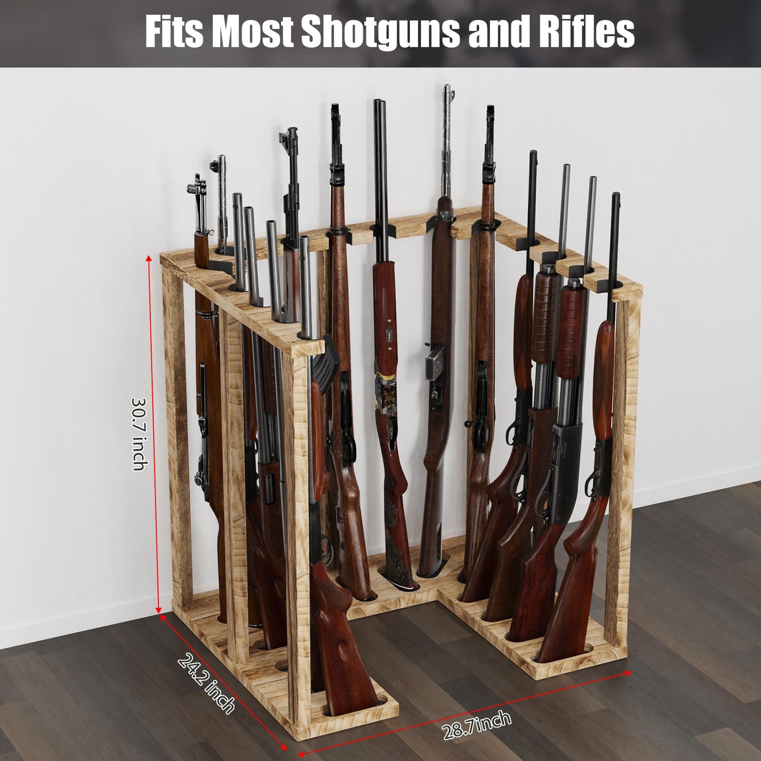 amoard Indoor Gun Rack Corner Wood Heavy Gun Rack Rifle Stand Display Shotgun Organizer and Storage Racks Stable Support for 15 Guns