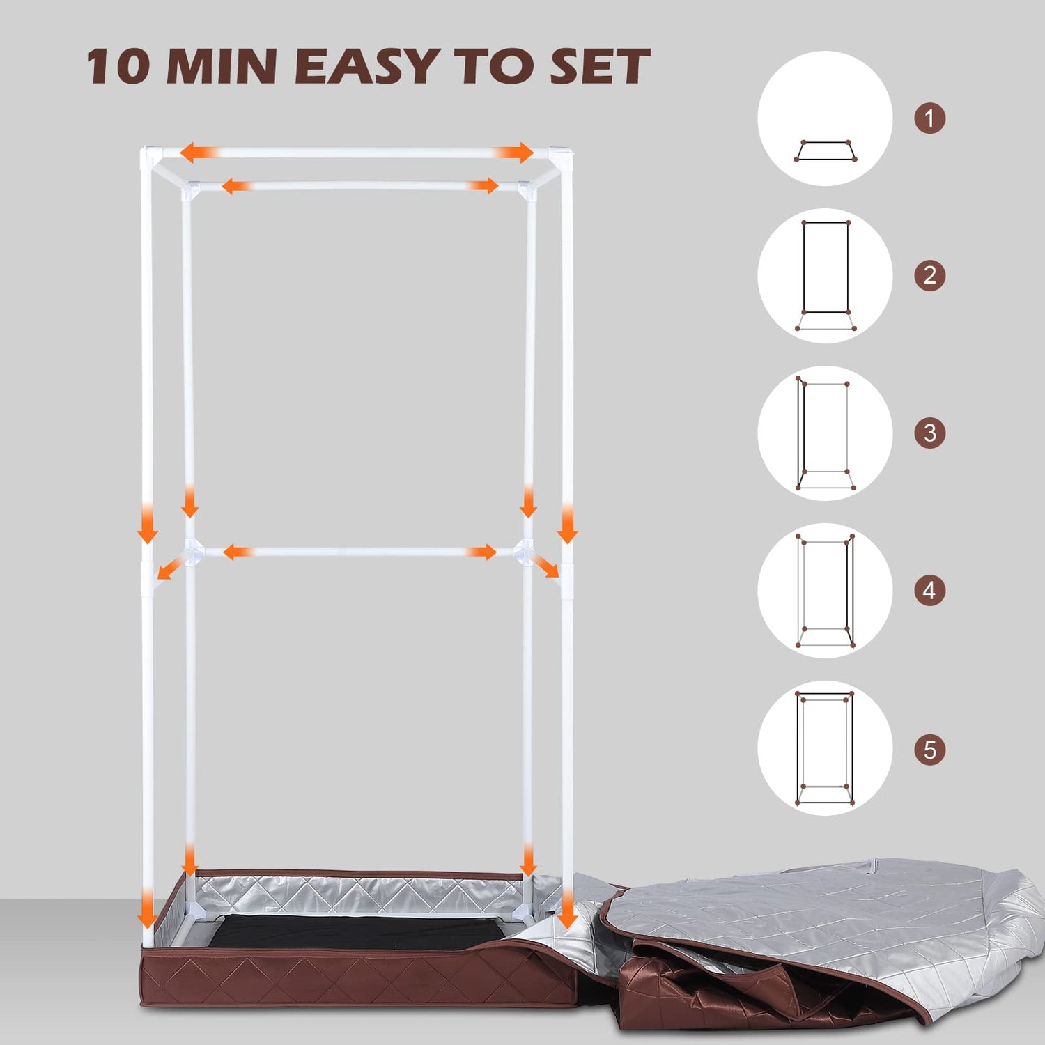 - Portable & Mobile: Assemble in minutes without tools, easy to fold for transport or storage. Our infrared saunas allow you to easily move the sauna spas from one room to another, perfect for small apartments, renters, or people who love saunas