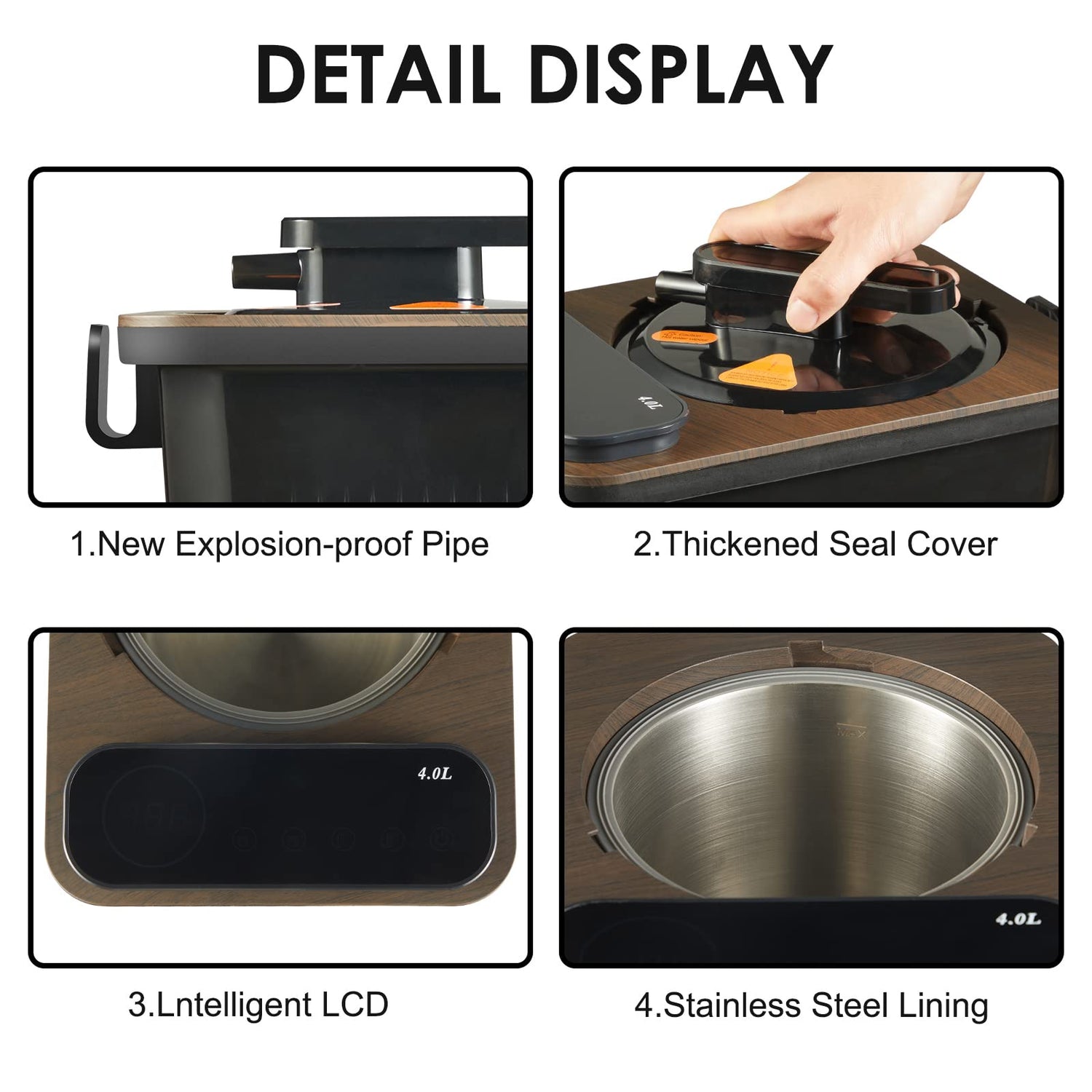 - Safe: Equipped with temperature-sensitive microcomputer automatic power-off device. Explosion-proof, anti-dry and anti-leakage. Automatically cut off the power when there is no water in the liner, effectively protecting the steamer pot from being burned, extending the service life