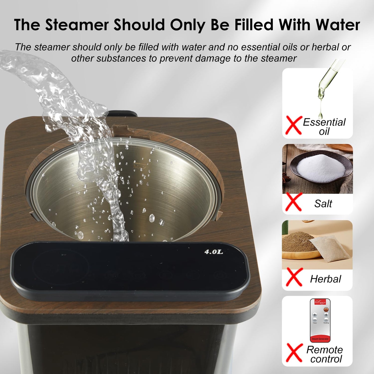 - High Quality Steamers: The sauna steamer has 18 gears, the power is 1400 watts, and it can hold 4L of water. There is a water level line engraved on the inner wall, do not exceed the 4L water level line for water injection (sauna and steamer sold separately, see bundled purchase below)