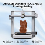 - 【PLA Recommend Settings】To achieve the best printing results with AMOLEN PLA filament, we recommend printing at a nozzle temperature of 200-230°C, a bed temperature of 30-60°C, and a base printing speed of 30-60mm/s. Our PLA filament supports printing speeds up to 500mm/s, provided the printer supports high-speed printing
