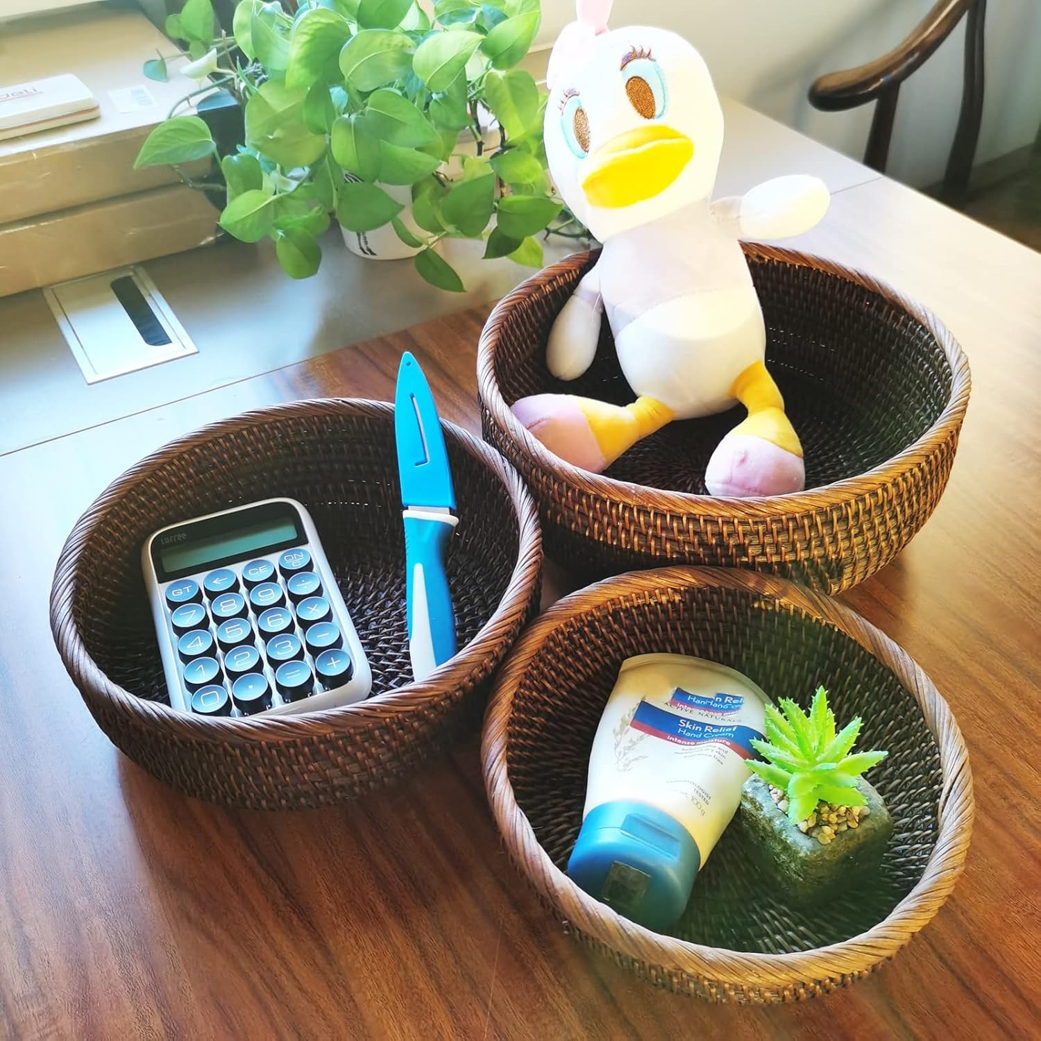 - ✔️Item includes 1pcs large size rattan bowl.Dimension:Diameter(top)-9.8 inches,Diameter(base)-7.87 inches,Height-3.5 inches